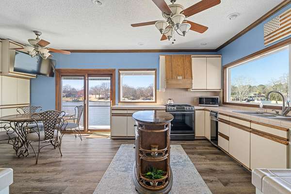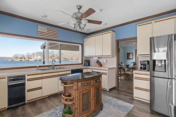 Located in the sought-after Alabama Shores subdivision, this stunning 5-bedroom, 3.5-bath waterfront home offers approximately 4,000 sq ft of beautifully designed living space. Surrounded by water on both sides, the property provides direct access to the Tennessee River, Wilson Lake, and McKiernan Creek—perfect for boating, sailing, skiing, and fishing. Features include a cozy fireplace, spacious two-car garage, private dock, boat ramp, and protective seawall. A sidewalk surrounds the home, complementing the beautifully landscaped grounds and enhancing outdoor enjoyment. Conveniently located just minutes from the hospital, restaurants, and shopping, this exceptional property blends comfort, recreation, and convenience in a premier waterfront setting.