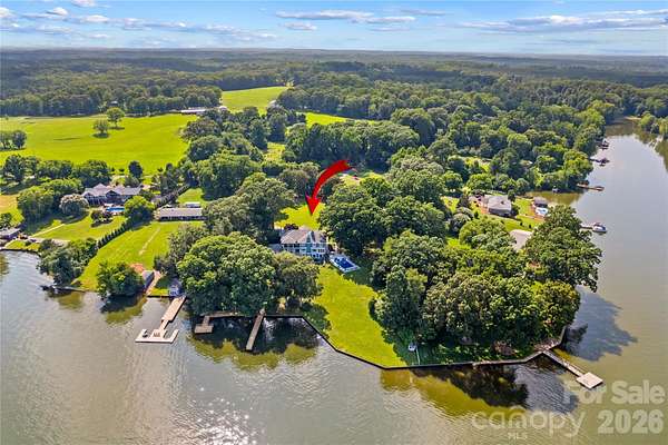 Spectacular lakefront living awaits on the shores of High Rock Lake! This extraordinary estate offers over 8,000 square feet of updated living space, designed to capture wide-range water views from nearly every room. Gated for privacy and set on 2.5+/- acres with almost 400 feet of shoreline, the property blends luxury, comfort, and resort-style amenities in a setting that is truly one of a kind. Step inside to discover an open floor plan where the chef's kitchen-with striking quartz countertops-flows seamlessly into the main living area framed by soaring floor-to-ceiling windows. The primary suite is a retreat of its own, featuring a sitting area and a private patio overlooking the lake. With 6 spacious bedrooms, 7.5 beautifully updated baths, multiple flex and office spaces, a loft, and even a dedicated dog grooming area, this home is designed for both elegance and function. Expansive outdoor living is at the heart of this property. Enjoy breathtaking views from the large veranda off the main level or entertain on the walk-out patio from the basement level. A stunning 745-square-foot inground pool with stone surround serves as the centerpiece of your private backyard oasis. The property also includes two private piers (432 sf and 580 sf) and is perfectly suited for multi-generational living. Additional features include a 3-car garage, circular drive, and meticulous finishes throughout. From its unmatched water frontage to its luxurious interior, this home is the ultimate High Rock Lake retreat.