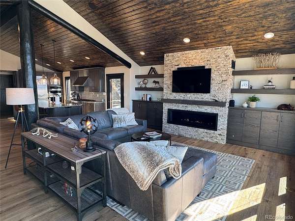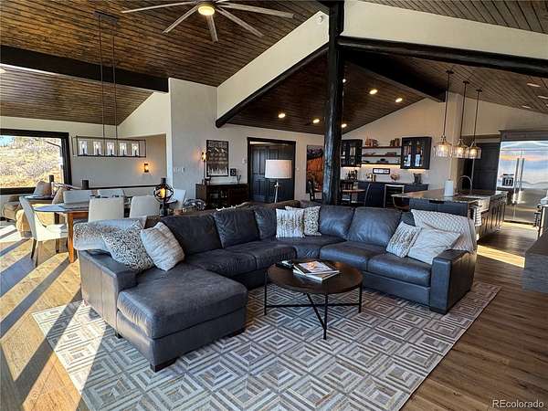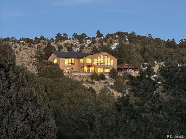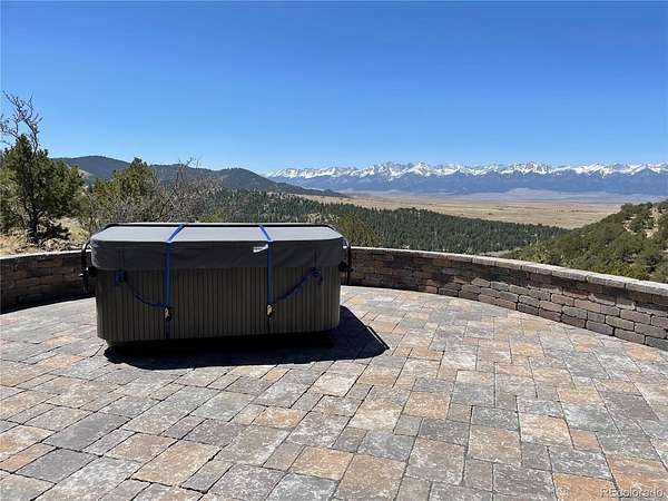 Windows of the Valley: Red Sunrise Ridge, with its majestic and all-encompassing views of the Wet Mountain Valley and Sangre de Cristo Mountain Range, is spectacular! This meticulous three-bedroom three bath home was designed to complement "the view" with floor to ceiling windows. Breathtaking views of the mountains are captured from every angle of this 2,266 square foot Custom home built in 2003, with floors warmed by radiant heat and soaring distressed pine ceilings. The new well-equipped gourmet kitchen includes leathered granite countertops and island with stainless steel appliances consisting of a Jennaire 6-burner gas range/oven, additional built-in microwave and convection oven and refrigerator. Spacious dining /game area adjoining kitchen with bonus wet bar and wine refrigerators makes entertaining easy. Access from the kitchen to an expansive deck will delight both family and friends and is located next to the inviting great room with gas fireplace. Additional gathering space is set in a nook offering tremendous views of the nearby Sangres. The generous primary ensuite with walk in closet and laundry facilities and additional guest bedroom and bath complete the main level. An additional bedroom, bath and bonus room are located on the walk out lower level accessing stone patio with fire pit and jacuzzi. This showcase home located on the ridge, offers grassy meadow with fringe of aspens is home to a variety of wildlife for viewing. Low maintenance exterior and breathtaking views, located a short distance from the mountain town of Westcliffe.