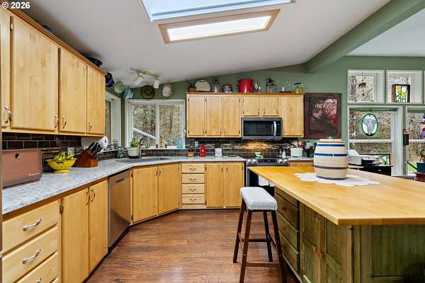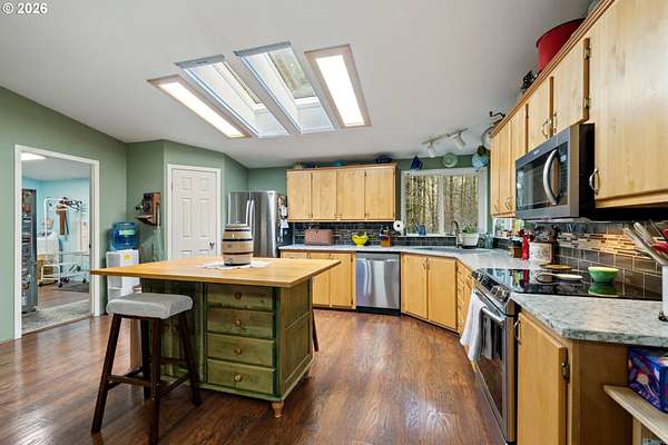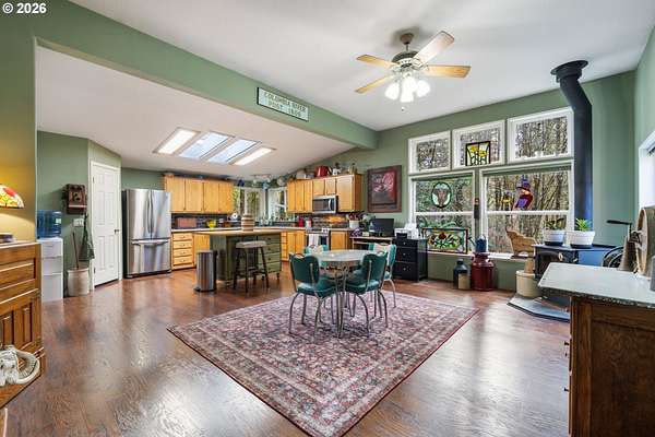 Beautifully maintained 4-bedroom, 2-bath home on 2.77 acres on the sparkling Wilson River, offering comfort, space and incredible outdoor access. Open kitchen with island and dining area, spacious living, family room and extra-wide hallways enhance the home's open feel. The primary suite features a jetted tub, separate shower and walk-in closet. Large laundry room for added convenience with a door to the backyard and barn. Enjoy river views and a private trail leading down to the water, perfect for fishing or relaxing. Jordan Creek sits just across the river, adding to the incredible natural setting! Property includes a large insulated barn with concrete floors, metal roof, electricity and loft space, plus a detached 2 car garage with lean-to, knotty pine cabinetry and walls and a jet air filtration system. Just 18 miles from Tillamook and minutes to ATV trails and outdoor recreation. Riverfront living with space for animals, hobbies and adventure!