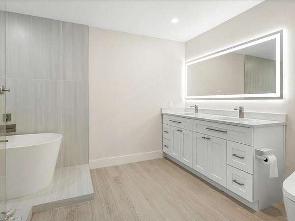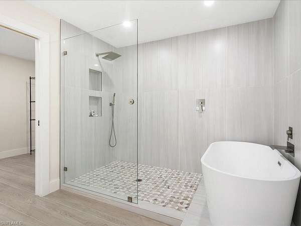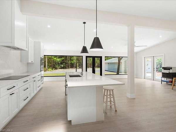 Situated on an impressive 2.72-acre estate parcel with coveted southern exposure, this beautifully updated residence combines clean architectural lines with refined finishes. Sunlight pours into the thoughtfully designed interior, creating a warm and inviting atmosphere for both everyday living and entertaining. The gourmet kitchen is a culinary centerpiece, featuring a spacious central island, top-tier Thermador appliances, and custom cabinetry designed for both style and function. The serene primary suite offers a spa-inspired bathroom and generous walk-in closet for ultimate comfort. Ideal for entertaining, the expansive outdoor deck invites gatherings with ample space for grilling and relaxation. A detached garage adds flexibility, currently configured with an area for workouts or recreational use. High-end finishes throughout reflect attention to detail and quality craftsmanship. Located on one of the most sought-after streets in Livingston Woods, this estate-sized property offers unparalleled potential - live comfortably now while you plan and build your dream estate behind the current home. Just minutes from top-rated schools, luxury shopping and dining, scenic parks, and Naples' pristine beaches, this is a rare opportunity to enjoy privacy, space, and location in one of Naples' most desirable non-HOA neighborhoods.