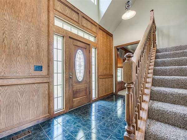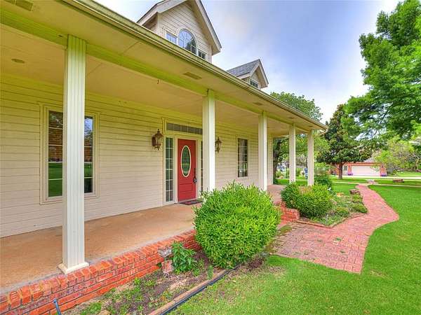 One of the beautiful areas of Edmond jus a 1/4 mile from Spring Creek Park at Lake Arcadia. The drive to this house is green and serene. Beautiful lawn and drive under the trees to your colonial home nestled in the trees. Big front porch and open entry. Cathedral ceilings tower in the living room. Lots of built ins throughout. large study with paneled walls. Formal dining with Bay window. Large kitchen island and spacious laundry room. Hidden game room above the garage, you can get fun and loud in there and not bother the rest of the home. Two large secondary bedrooms upstairs separated by balcony. Large work shop in the back that does not take away from view. Only a 1/4mile from Lake arcadia Trail head. Or pull the boat out of shop and be at gate in a minute. Well cared for home where you make your memories in for years to come.