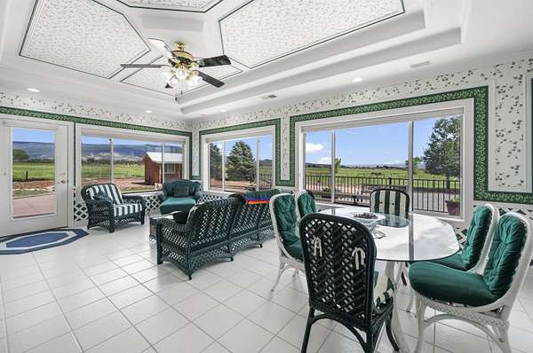 Luxury home with a distinct feeling of remoteness and sweeping views of the Grand Mesa. Walking distance to BLM and minutes away to National Forest is a rare find. Entering through the front door is the entryway to the sunroom with windows that take advantage of all the views. Take in the beautiful sunsets of the Grand Mesa while enjoying the solitude of the living area in the home. Every room in the house is timeless with its rich luxurious feel. On the west end of the house is an apartment with upgrades throughout which can be used as rental, mother-in-law set up, and many more options. An oversized 3 car garage with pit area and hoist meets most vehicle needs. Park all-terrain vehicles in the garage on the North side of the house. The Barn adds to the uniqueness of this property being big enough to park an RV trailer, 4 horse trailer, flat bed and room left over. If that is not enough at the North end of the barn is a room dedicated to a shop area and south of the barn is a tack room for livestock. Pastures are cross fenced with irrigation. Enjoy the riding arena or use it as a corral. There is a livestock shelter with feed room that connects to the riding arena and a round pen to work horses that is outside the arena. A nostalgic bunkhouse sits by the main house and is great for the overflow of overnight guests. This property is in hunting unit 41 and Downtown Grand Junction is 25 minutes away and 45 minutes to the Grand Junction Regional Airport. The possibilities on this property are endless!