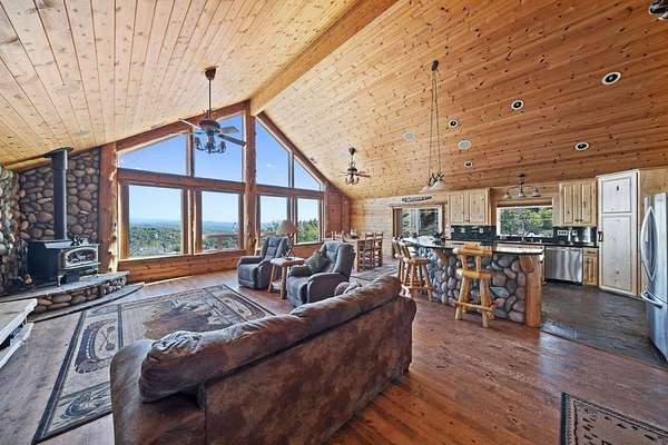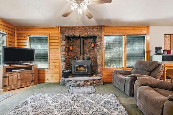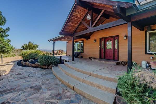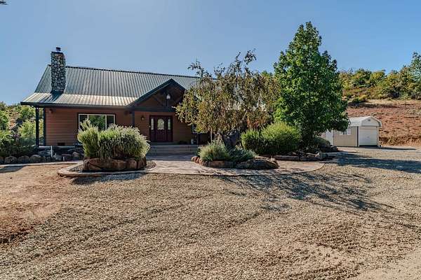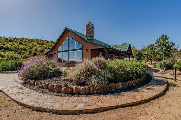 One of a Kind - Custom built home located on 40 acres with amazing views & privately gated. Backs up to BLM land. 2 x 6 construction - Milgard windows. Spacious kitchen with stainless steel appliances including dishwasher, gas range, microwave, refrigerator & beverage refrigerator. Great room with rock hearth & woodstove - flat rock brought in locally. Wired for surround sound. Amazing views from great room & kitchen. Spacious master suite with access to patio area - large walk-in closet with a number of built-in drawers. Dual sinks - walk-in shower & jetted tub. Interior laundry which includes washer & dryer. Built-in desk area and cabinets in hall. Some landscaping in front & nice concrete patio area for entertaining & sitting out enjoying the views. Generac back-up generator. Additional permitted storage cabin dating back - great for family visiting or in-law quarters. Large storage shed. Too many amenities to list. Video -- https://vimeo.com/1126470197?fl=pl&fe=sh