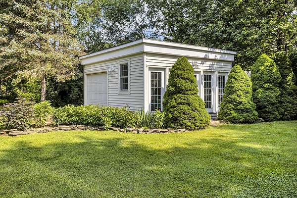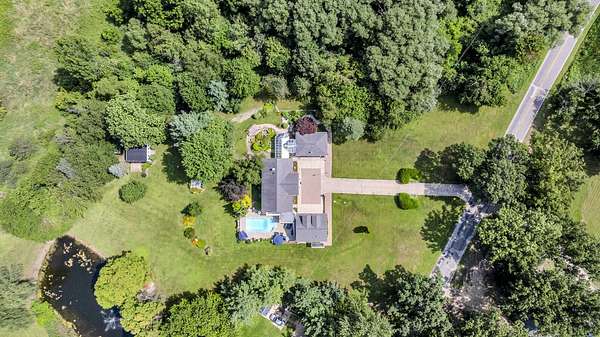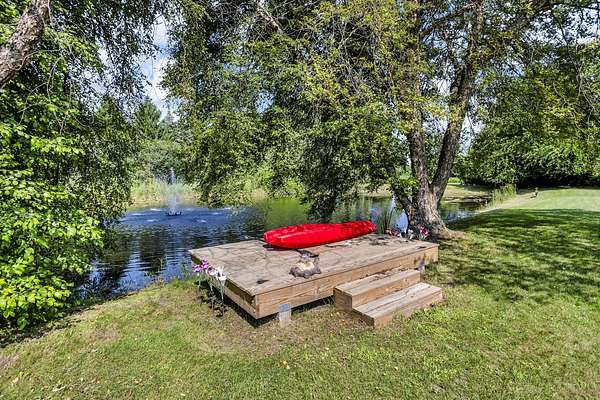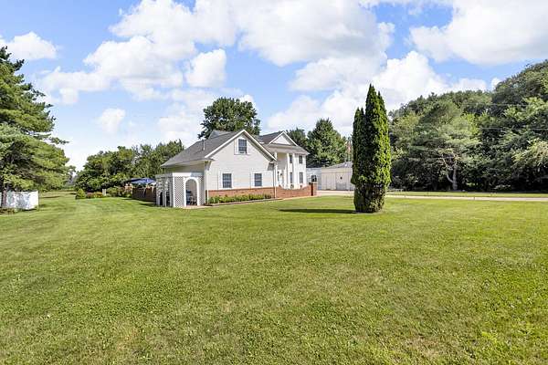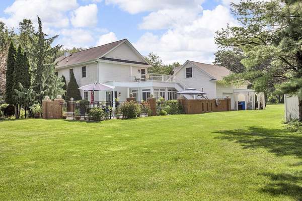 Custom-built 3-bed, 2.5-bath Colonial offering 3,800+ SF of above-grade living space on 4.7 acres. Features include a sun-filled solarium, family room with wet bar and wood-burning stove, and an updated kitchen with granite counters and stainless-steel appliances. The second-floor primary suite offers a walk-in closet, en-suite, and access to an elevated composite deck. Enjoy an enclosed porch leading to a mineral water in-ground pool, manicured grounds, and a pond with fountain, dock, and stairs to the water. Heated bonus room above garage ideal for home office and energy-efficient zoned HVAC. Pond is located entirely on the subject property. Generously sized garden shed with electricity. Two additional temporary structures included. Interior and exterior lighting, including pool and pond fountain are Alexa controllable. Garage features overhead doors on two sides as well as EV charging station. Solarium is heated. Most interior furnishings are negotiable.