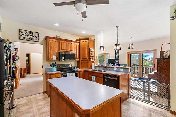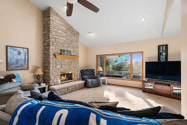 Room to spread out. Room to bring everyone. Positioned on over 4 wooded acres spanning a double lot, this Mt. Vernon Hills home offers more than 4,000 square feet of finished living space with built-in flexibility. The walkout lower level includes a full kitchen, creating true dual-living potential for extended family or long-term guests. Vaulted ceilings, a fireplace, and open gathering spaces make everyday living comfortable. Practical upgrades include a whole-home generator, a replaced AC unit, a new water heater, a softener and filtration system, gutter guards, basement flooring, and an added bedroom with a closet. Hillside views, privacy, and a three-car garage complete the setting just outside Gaylord. A property that offers both presence and practicality schedule a private showing.