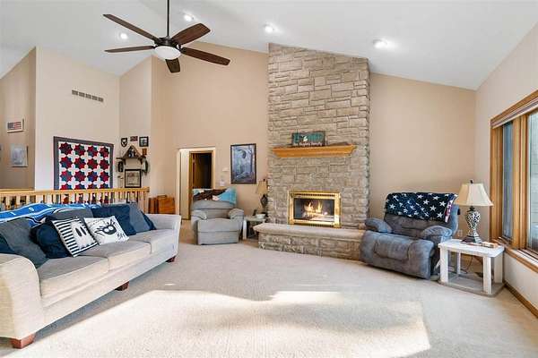 - Built in Microwave, Cathedral Ceilings, Ceiling Fans, Central Air, Deck, Dishwasher, Dryer, Gas Fireplace, Near Snowmobile Trails, Paved Drive, Paved Road, Range, Refrigerator, Sprinkler System, Standby Generator, Washer