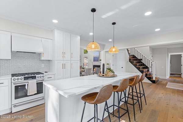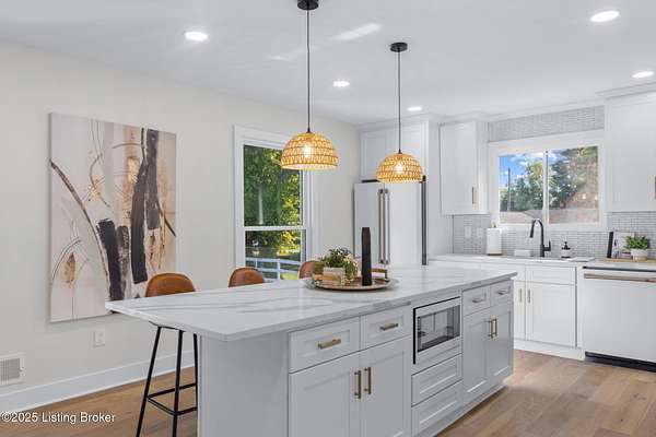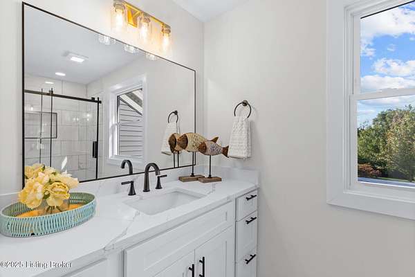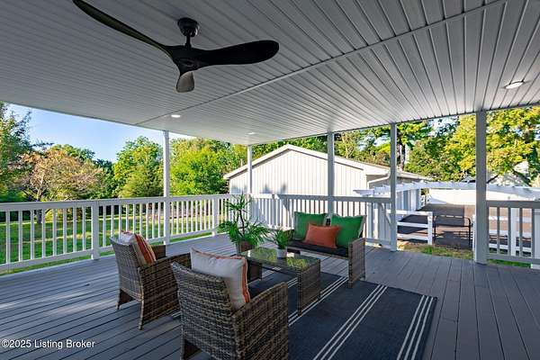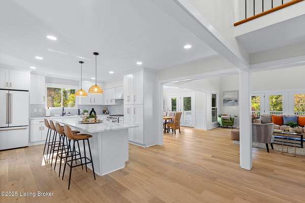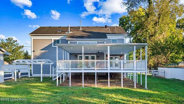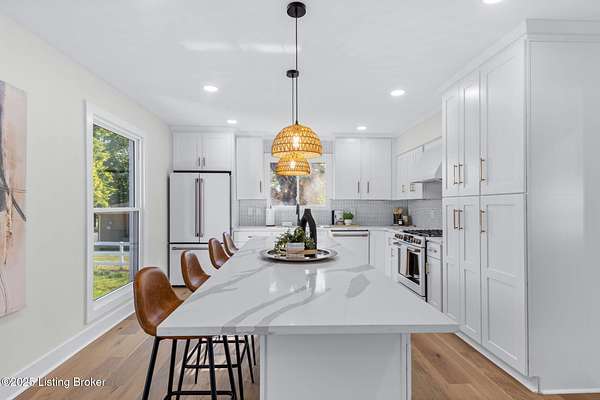 Welcome to 6803 Brownsboro Road-where location, land, and luxury unite. Nestled on almost 2 acres, this newly renovated home is a rare find. From the moment you arrive, the property impresses with its expansive 4-car detached garage/workshop, oversized parking area, and a massive covered deck designed for effortless entertaining. Step inside to discover a light-filled open floor plan that balances warmth with modern elegance. At the heart of the home, the gourmet kitchen is a showstopper-complete with premium GE Cafe appliances, quartz countertops, and an oversized island perfect for both gatherings and everyday living. The dining room stuns with its designer accent wall and chic lighting, while the dramatic two-story living room adds a sense of grandeur. The first floor also offers a powder room and a flexible office/bonus room. Upstairs, a loft overlooks the living area and leads to four serene bedrooms. The primary suite is a private retreat, boasting a custom walk-in closet and a ensuite bath room. Three additional bedrooms share a beautifully updated hall bath. Outdoor living takes center stage here with the expansive covered deck ieal for dining al fresco or simply enjoying the views. Car lovers and hobbyists will appreciate not only the 4-car detached garage/workshop but also the 2-car attached garage and extensive parking. The unfinished basement provides even more space to customize as you wish. Perfectly positioned in a coveted location, near schools, hospitals, shopping and more, this home is the ultimate combination of space, style, and convenience, an opportunity you won't find again. Don't miss your chance to make this extraordinary property yours. Schedule your showing today!