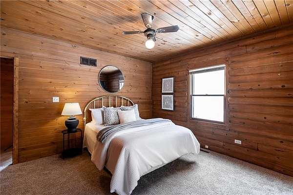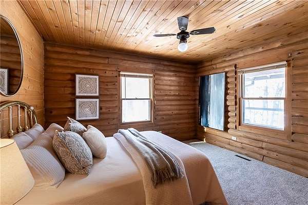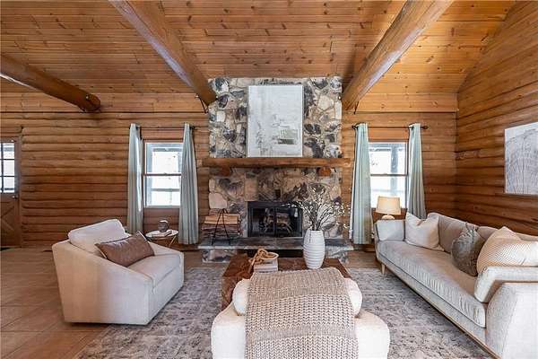Est $3,029/moSet on over 4.39 private acres, this inviting 3 bedroom, 2 bath log cabin blends rustic charm with comfortable living. Surrounded by nature, the property offers a peaceful retreat ideal for full-time residence, a weekend escape, or a vacation rental. Warm wood interiors, classic log cabin construction, and natural light create a cozy welcoming atmosphere. Enjoy a private pool perfect for summer relaxation. The expansive basement is already stubbed for a bathroom and the garage floor is suspended for additional storage. Don't miss this unique property!