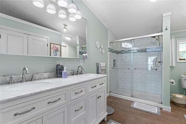 Step inside to find everything completely remodeled with beautiful, modern finishes throughout. The primary suite is truly a retreat, featuring a huge bathroom and two walk-in closets for ultimate convenience.