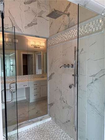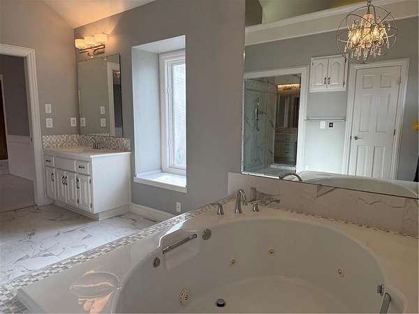 Family Estate Home for Lease. Imagine your very own GYM space with 15 ft. ceilings. Enjoy the tree-lined backyard with walking trails and a great outdoor smoker oven grill surrounded by built-in seating. New expansive deck for entertaining. A Beautiful Glamour Suite on the main floor with attached private library/home office. The lower-level family room has a wet bar,a fireplace, a full bath, and a large storage room. The 2nd. floor is open to the catwalk and loft. All three bedrooms have their own walk-in closet and private baths. Also on the 2nd floor is the 5th. non-conforming bedroom. It's perfect for a guest or a playroom. The main floor has an eat-in kitchen with a center island, pantry, and hearth room. You can enjoy your morning coffee and take in the park-like views. The main floor gathering room has soaring ceilings and a wall of windows for natural daylight. This home will accommodate a large family.