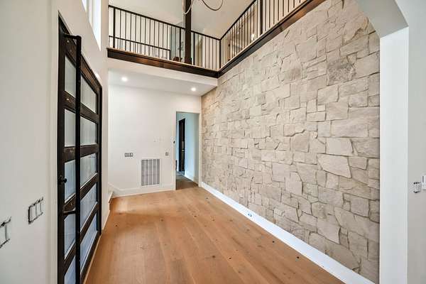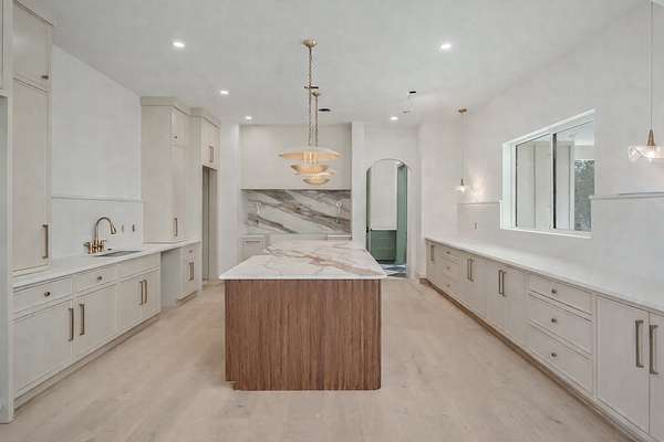 Set on a breathtaking two-acre canvas, 6807 Pennywell is a masterful blend of timeless elegance and modern design. From the two-story stone-clad foyer to the soaring 25-foot ceilings in the main living space, every detail has been thoughtfully composed to inspire. The light-filled great room is anchored by one of three fireplaces and flows seamlessly into a bespoke chef's kitchen featuring a fluted 12-foot island, full-slab backsplash with pot filler, panel-ready appliances, and a stunning scullery with diamond-pattern tile floors.