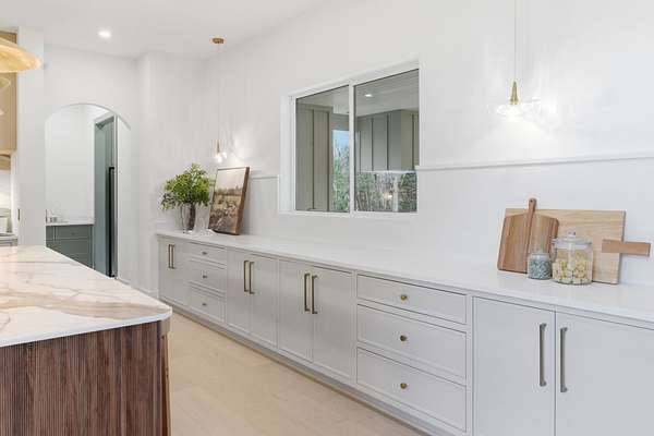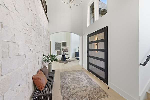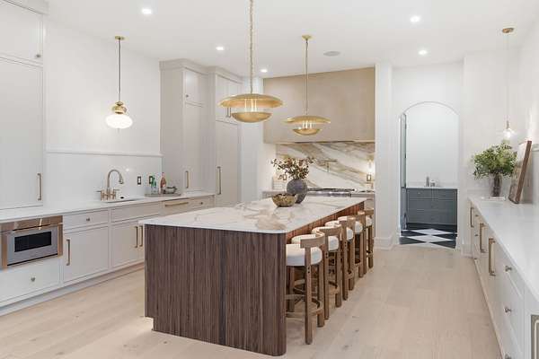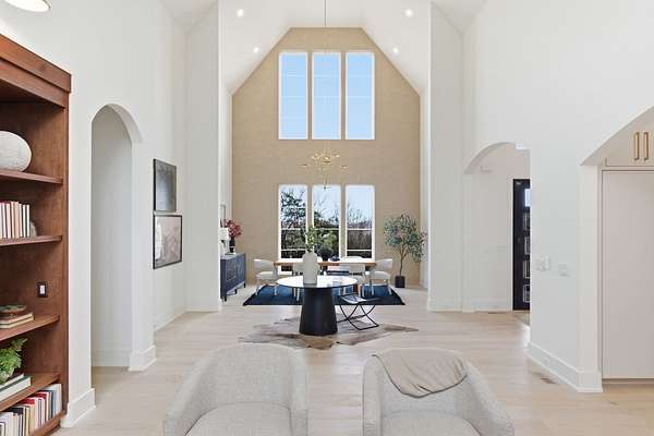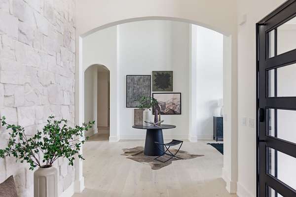 Set on a breathtaking two-acre canvas, 6807 Pennywell is a masterful blend of timeless elegance and modern design. From the two-story stone-clad foyer to the soaring 25-foot ceilings in the main living space, every detail has been thoughtfully composed to inspire. The light-filled great room is anchored by one of three fireplaces and flows seamlessly into a bespoke chef's kitchen featuring a fluted 12-foot island, full-slab backsplash with pot filler, panel-ready appliances, and a stunning scullery with diamond-pattern tile floors.
