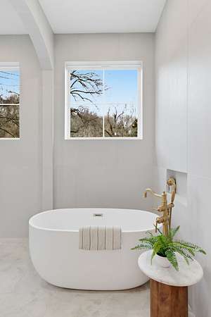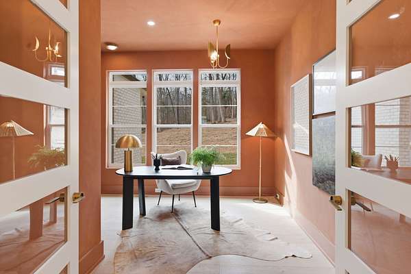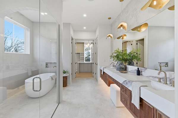 The main-level primary suite offers a spa-like retreat, while Venetian plaster accent walls add warmth and artistry throughout, including the private home office. Upstairs, a bonus room overlooks the park-like grounds, and all five bedrooms feature en-suite baths for ultimate privacy.