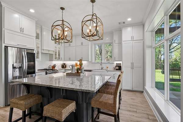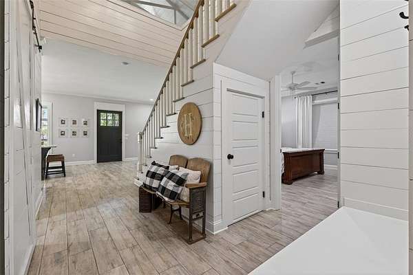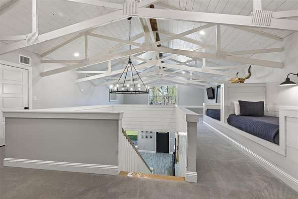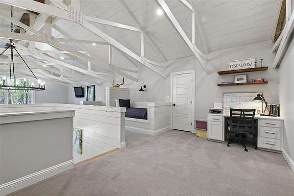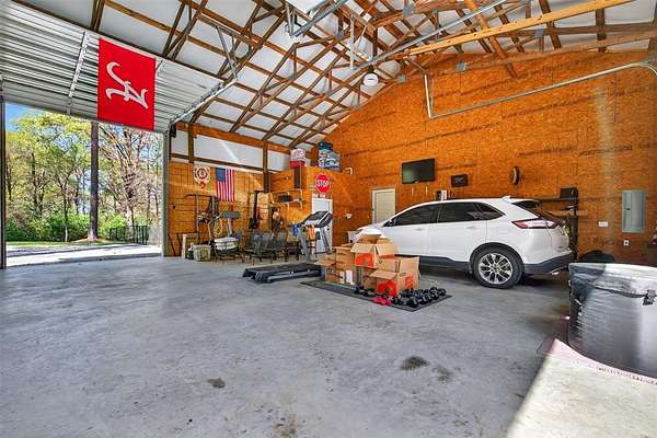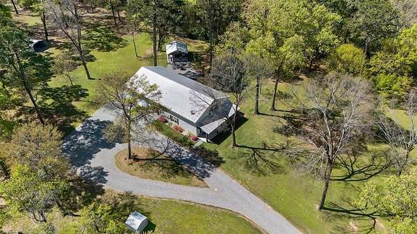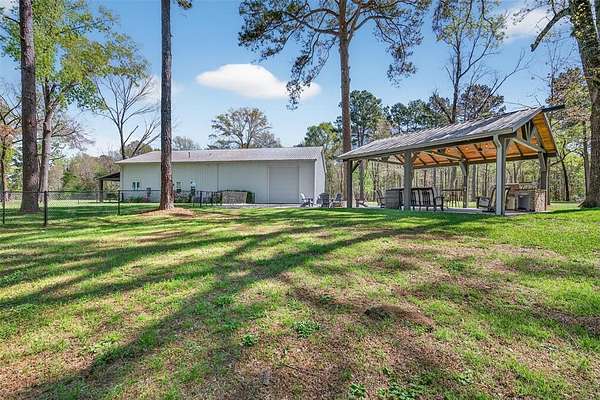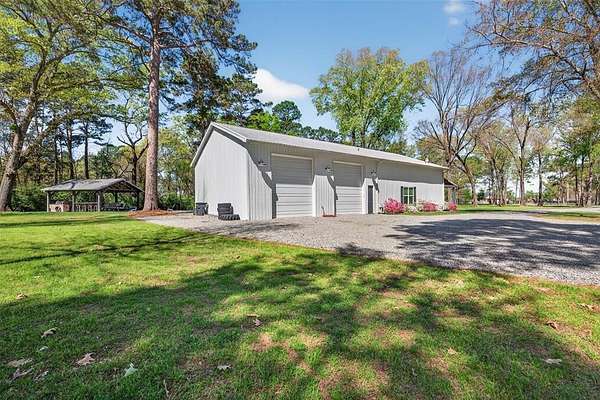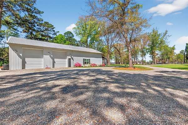 Welcome to your dream country retreat! This custom-built barndominium offers approximately 2,400 sq ft of thoughtfully designed living space, perfectly blending rustic charm with modern comfort. Featuring 2 spacious bedrooms, 2.5 bathrooms, and a unique loft area complete with two built-in twin beds-perfect for guests or a cozy getaway space. The home is seamlessly connected to an impressive 40x40 shop, equipped with three 12x14 automatic doors, making it ideal for hobbies, storage, or business use. Situated on a beautiful 10-acre tract, the front 5 acres are cleared, offering endless possibilities for recreation or expansion, while the remaining acreage provides privacy and natural surroundings. Enjoy peaceful lake views right from your property, adding to the serene atmosphere. Outdoor living shines here with a large front porch perfect for relaxing evenings, and a spacious pavilion & fire pit area designed for entertaining family and friends under the stars. The property is fully fenced and features an electric automatic entrance gate, providing both convenience and security. This one-of-a-kind property offers the perfect combination of country living, functionality, and modern amenities-don’t miss your chance to own this incredible piece of land!