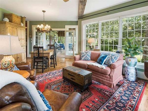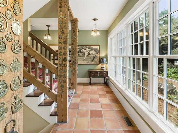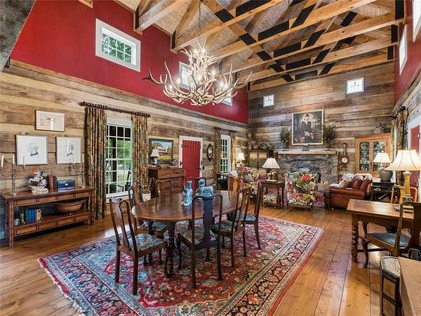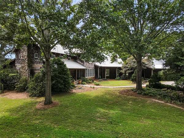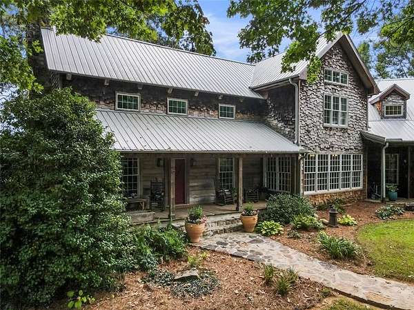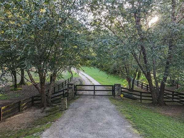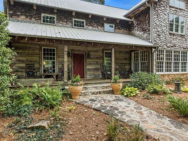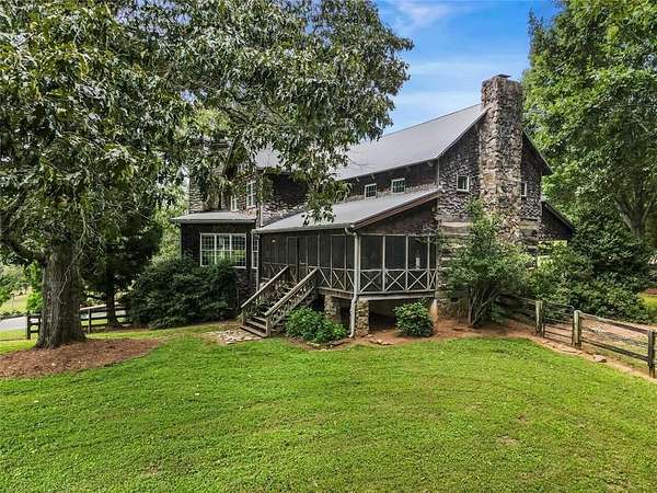 Experience absolute perfection on this 30 acre equestrian farm with rolling pastureland, three barns with 16 stalls, an incredible main house, a pool and a large guest house with elevator. Approached through a gated entry, the driveway winds past acres of fenced pastureland, beautiful hardwoods and riding arenas as you proceed to the wood and cedar-shingled main house. Evoking a bygone era, the home feels centuries old yet provides all the perks of modern living. Enter from the covered front porch into the enormous two-story grand hall with dining room, meant to feel like a log cabin with its wood-lined walls, wide-plank floors, exposed trusses and large stone fireplace. The adjacent gourmet kitchen provides all the luxuries for today's lifestyle with a large island, double-stacked cabinetry, stainless steel appliances, stone countertops, charming butler pantry and walk in pantry, a farmhouse sink and a nearby substantial laundry room. The kitchen flows seamlessly into the fireside keeping room and casual dining area. Huge double-hung windows wrap around the room and frame the sprawling views of the surrounding fields. French doors lead to the charming oversized screened porch with plenty of room for separate dining and sitting areas. Three en-suite bedrooms and large mud room complete the main level. Upstairs, you will find a large open office loft space, overlooking the grand hall as well as the primary bedroom featuring a cathedral ceiling with rustic beams, a fireplace, stained glass clerestory windows, a dressing room with two walk-in closets and an en suite bathroom with dual vanities, a jetted bathtub and a separate shower. Head downstairs to the incredible Garden & Gun-style terrace level, which features a wine cellar, fireside professional theatre room two built-in desks, a wet bar, a slate tiled game room, a gym or bedroom and a full bathroom. Venture outside to the refreshing, heated, saltwater pool with a large stone pool deck, a diving board and a motorized retractable pool cover. The property also features a four-stall barn with a tack room, a 12-stall barn with a washroom, and ample storage space. Spacious guest cottage above with elevator up is on the second level with a two-bedroom guest house with large additional office space. Perfect for a caretaker, this luxurious guest house includes an open floor plan with a two-story cathedral ceiling in the dining and living rooms, a white kitchen with an island, two large bedrooms, two bathrooms and a huge screened porch. Completely private and bordering a lake and creek with charming walking bridge, the property also includes an oversized arena, a round pen and a considerable outbuilding with a workshop and additional storage. Short ride by horse to Dawson Forest with endless trails (trail ride, mountain bike, hike). The property is also located close to a Elliot Field Private Airport, Atlanta Motorsports Park, Amicalola Falls, Lake Lanier and the North Georgia Outlets. A once-in-a-lifetime opportunity, this property is an equestrian lover's paradise!