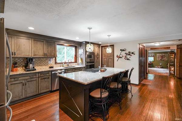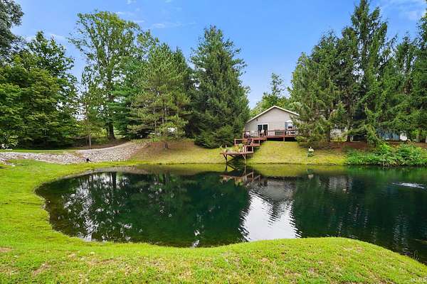 Tranquil Park-Like Retreat located less than 10 minutes from downtown Spencer, this stunning, well-maintained two-bedroom home is nestled on 4.50 lightly wooded acres, complete with your very own half-acre stocked pond. Discover a serene, park-like setting fenced with an electric front gate. This remarkable property includes Mature evergreen and pines trees as well as many other mature trees, Outdoor fire pit areas 30-amp RV hookup, two chicken coops, four covered dog kennels, Two-car garage with an attached lean-to, Garden area with fruit tree and berry bushes. Pond is equipped with an aerator, and stocked with blue gill, catfish, crappie and bass. A generator is also included for peace of mind during power outages. Inside this spacious home you will find a Custom designed kitchen with Soft-Close cabinets from Freedom Valley Cabinets, granite counter tops, a walk in pantry, and stainless-steel appliances. Reverse osmosis water filtration system and water softener. Bamboo hardwood floors in kitchen and hallway. Spacious master ensuite with walk in closet and soaking tub in the master bathroom. This peaceful homestead is perfect for those seeking space to grow, relax, and enjoy nature without sacrificing comfort. Conveniently located near Spencer, with easy access to Bloomington and local amenities.