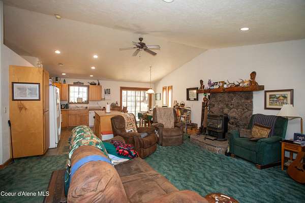 Tucked away on 10 peaceful, partially wooded acres, this 3-bedroom, 1.5-bath home is ready for your personal touch. An airy open floor plan and soaring vaulted ceilings make the living space feel bright and welcoming, while warm cedar siding adds timeless cabin-style character. Bring your vision-the solid bones and spacious layout are the perfect canvas for your personal touch. Outside, enjoy room to roam, towering trees for shade and privacy, and a fantastic 30' x 40' shop that's ideal for hobbies, storage, or all your big toys. Country quiet, big sky views, and endless potential-come make this slice of acreage your own!