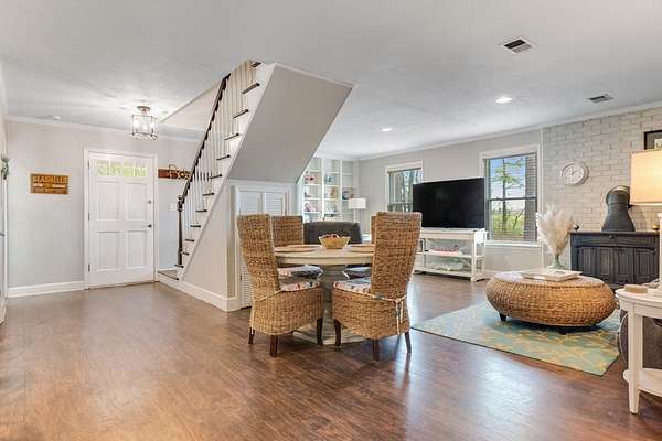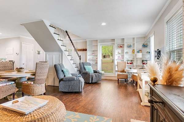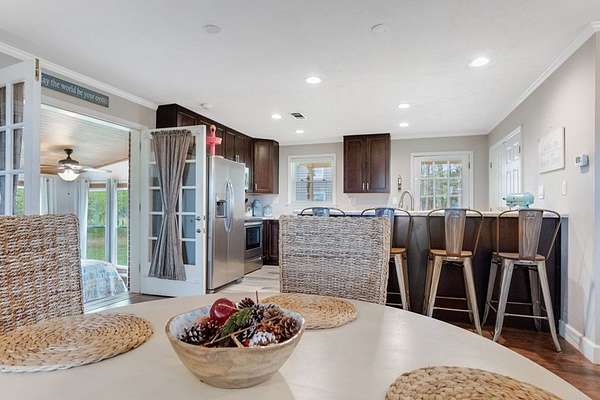 ~ DARLING HOME IN MITCHELL COUNTY SITTING ON 10 ACRES ~ BARN WITH LEAN TOO ~ WIRED WORKSHOP ~ ALL 10 ACRES ARE FENCED ~ This adorable 3-bedroom 1 bath home sits way off of the road with PRIVACY GALORE! Beautiful and updated inside and out! Open and Airy Floorplan! Modern kitchen complete with new cabinets, countertops, stainless appliances, pantry, breakfast bar and dining area! Spacious living room complete with a wood burning stove, built-in bookcases and LVP flooring! The Primary Bedroom is on the main floor and has lots of windows for an abundance of natural light! Attached to the primary suite is an office or sitting area! The main bathroom is tastefully updated with an updated vanity, mirror and lighting! Upstairs has 2 bedrooms with ample closet space! Outside has a covered side porch, workshop and barn! The land is gorgeous and gives you so much privacy, peace and quiet! This is your opportunity to have a mini farm, horses or just a serene place to call HOME! HVAC only 2 Years Olds! Updated Windows! CARPORT with additional storage! Wildlife Everywhere! Eligible for 100% USDA Financing!