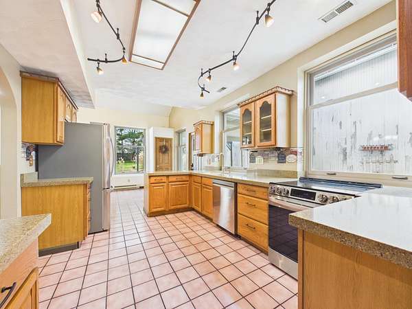 - Dishwasher, Electric Range, Refrigerator