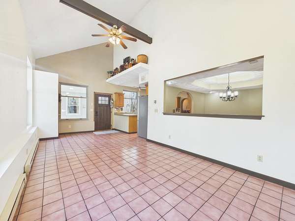- Carpet, Ceramic/Porcelain, Vinyl, Wood
