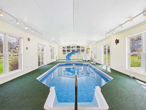 Country Barn conversion offers exceptional versatility, featuring approx. 5,422 sf of exposed wood beams, abundant natural light, multiple living options, and a heated indoor pool for year round enjoyment. The upper level includes a private en suite retreat with fireplace, oversized closets, balcony, two additional bedrooms with a Jack and Jill bath, and a full attic. The main level features a kitchen with granite countertops, spacious living areas, a large flexible foyer, and two separate in law or en suite options with sitting areas, laundry, and fireplaces--ideal for multi generational living. Additional highlights include two wood burning fireplaces, hot tub ready spaces, a barn, and a heated and air conditioned 30x70 steel building with office, perfect for business or hobby use. Conveniently located off State Route 188 near the 33 bypass with easy access to The Hocking Hills Region, Columbus, Circleville Virtual tour includes floor plan