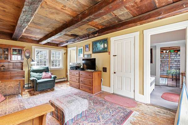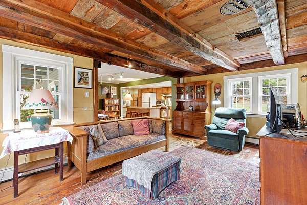 This 1830's farmhouse cape has lots of it's original charm from yesteryear with updates you'd expect today. Sitting on 5 acres there is lots of space for gardens, with rhubarb and mature apple trees already in place along with numerous spring bulbs and perennials. Once used for beekeeping and vegetable gardening the fields can easily be brought back or manicured for entertaining and play space. The front and back porches provide a magical setting to catch the summer breezes and gaze at the twinkling nighttime stars. Inside you'll find wide pine floors, exposed beams, a cozy woodstove, and an updated kitchen and bath. The flexible floor plan has a primary bedroom on the first floor with 2 more bedrooms on the second floor and a 3rd room that would make a perfect home office. The home offers tons of storage options with an attached woodshed and unfinished attic space. The detached barn has seen better days but offers additional storage possibilities. The homes location is the perfect mix, close to town but the feeling of being in the country. Listed by Craig Miller, Portside Real Estate Group..