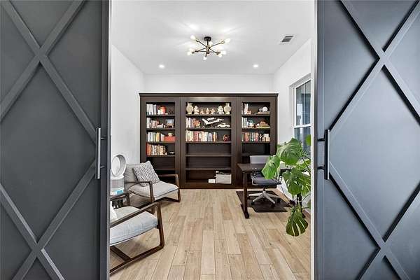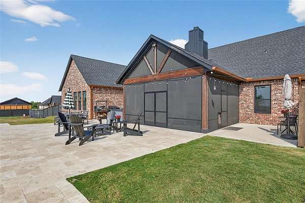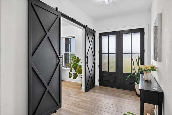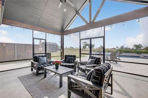 New Year - New Price! Welcome to this stunning Custom Modern Farmhouse where timeless design meets the tranquility of country living. It's a home that feels custom and is designed for you to appreciate the peaceful rhythm of country life. Situated near the end of a cul-de-sac, and on acreage that backs to a private ranch, this home offers uninterrupted views, open skies, and the serenity of nature - all without sacrificing modern luxury. Step inside to find an open-concept floor plan designed for both everyday living and effortless entertaining. The main level features three spacious bedrooms, two and a half baths, a dedicated office with built-in display shelving, and a mudroom complete with a dog wash station! The great room features a vaulted ceiling with exposed beams and fireplace that is also open to the patio. You'll also appreciate custom barn doors, and designer wall accents that create a warm, inviting atmosphere. The kitchen is a dream come true with an expansive island, built-in serving bar with wine refrigerator, and a hidden walk-in pantry offering abundant storage for your larger kitchen essentials. The Primary Suite is a peaceful retreat showcasing backyard views, a spa-inspired bath with a massive walk-in shower built for two, a soaking tub, and a large walk-in closet designed to impress when you dress! Upstairs, a spacious media or flex room is ideal for movie nights, a home gym, hobby studio, or guest retreat. The year round enclosed back patio with solar screens and fireplace is the perfect setting for coffee in the morning or a cocktail at night to enjoy watching the sunset and you get a brand new in-ground pool and spa! Every detail of this home was crafted to capture light, space, and style - from the bright, airy interiors to the premium finishes throughout. Home is equipped with an EV-Charger and connection for a generator. Come see this one-of-a-kind property and discover where modern living meets country charm!
