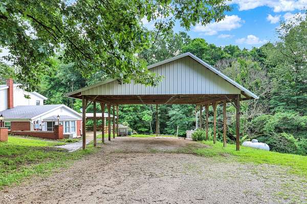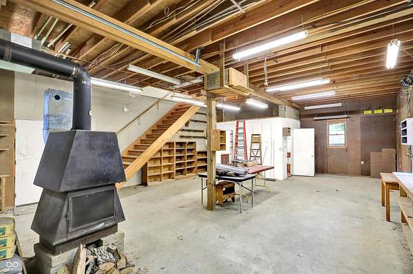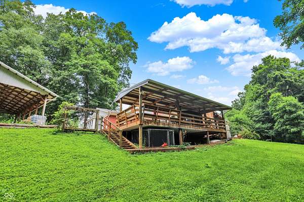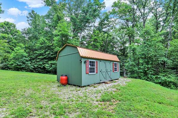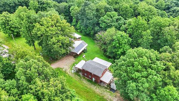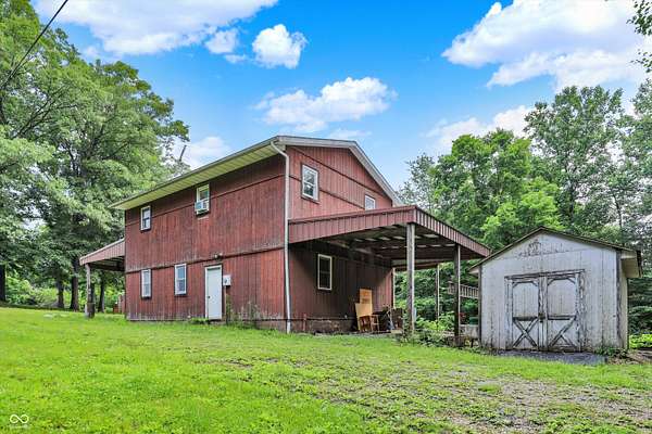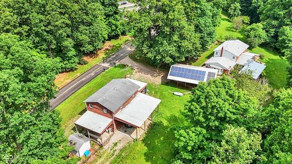 Just 9 miles from Indiana University, this 7.63+ acre property offers privacy, space, and plenty of potential. The main home features geothermal heating and cooling, solar panels, and a whole-house Generac generator-ideal for someone looking to reduce utility costs. While the home could use some cosmetic updates, the price reflects that opportunity. The two-story outbuilding includes a full bath on the main level and an upper level already framed for an apartment. The second parcel includes an Amish-built structure that could serve as a storage barn or be converted into a small guest space or Airbnb. With easy access to the interstate, this could be a great setup for someone wanting land close to town, an investment property, or a small homestead. The acreage includes mature trees and established plantings like blueberries, blackberries, grapes, apple and pear trees, and a variety of perennials. It's a solid foundation for someone ready to put in some finishing touches and make it their own.