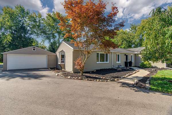 Updated Plymouth ranch on 3.45 acres! 1,872 SQFT, 3 bdrms, & 2 full baths located just 15 minutes from downtown Plymouth & Ann Arbor. The spacious living room features a fireplace & cozy wood stove w/brick & tile surround. Major 23'-25' updates include: Septic pumped (26'), new furnace (25'), luxury vinyl plank flooring, fresh paint, remodeled bthrms with new vanities & faucets, & a redone kitchen w/quartz countertops, appliances, soft gray cabinets, gold hardware, & new upper cabinets. Other highlights: office addition, water softener, Zoeller sump pump with battery backup & auxiliary pump, regraded & encapsulated crawl space, whole-house generator, refreshed landscaping, & patio pavement. The primary suite boasts a huge custom WIC, plus new washer, dryer, doors, & lighting. Outside, enjoy a 2.5-car attached garage, 3-car detached garage, additional 1-car garage, shed, & a paved patio with a hot tub (negotiable). Turnkey & beautifully maintained - schedule a showing today! BTVAI.