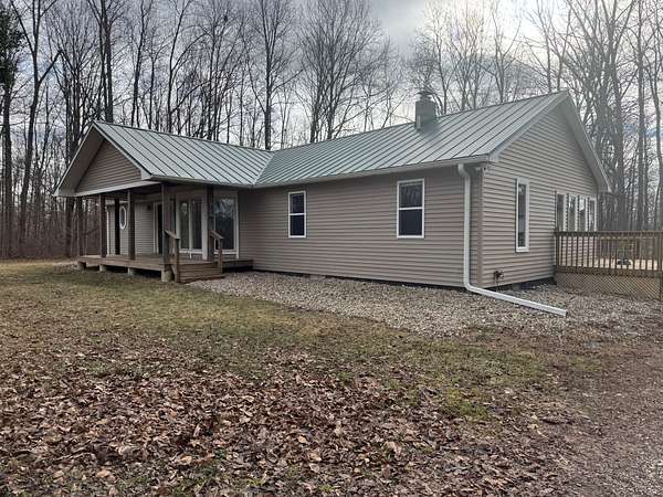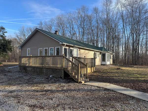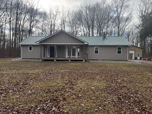 The home showcases hardwood and tile flooring and is topped with a durable standing seam metal roof. Relax and take in the scenic surroundings from the covered porch or the open deck, perfect for enjoying quiet mornings or hosting gatherings. Outside, the property offers outstanding functionality with multiple outbuildings, including a pole barn, providing space for equipment, hobbies, or workshop use. A private pond adds charm and recreational opportunity, while the nearly 12 acres offer room for animals, gardening, or simply enjoying wide-open space and privacy. This versatile property is ideal for a mini-farm, hobby farm, or rural retreat, all while remaining conveniently located near local amenities.