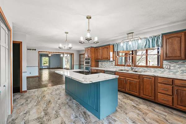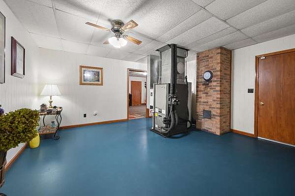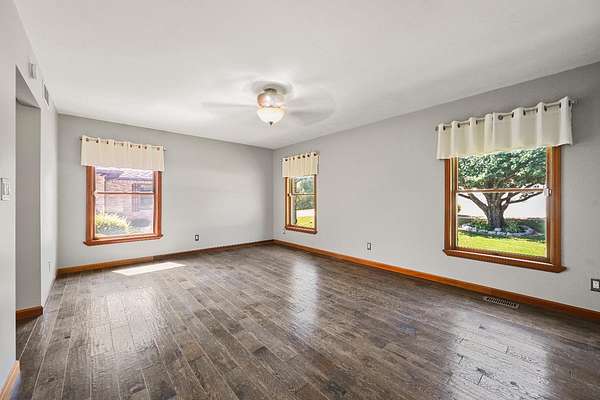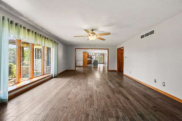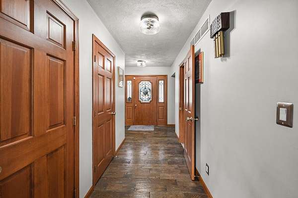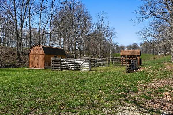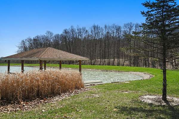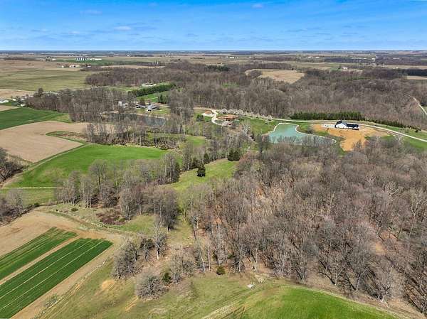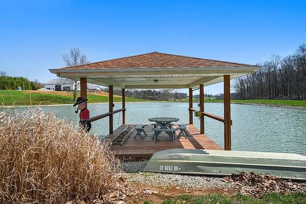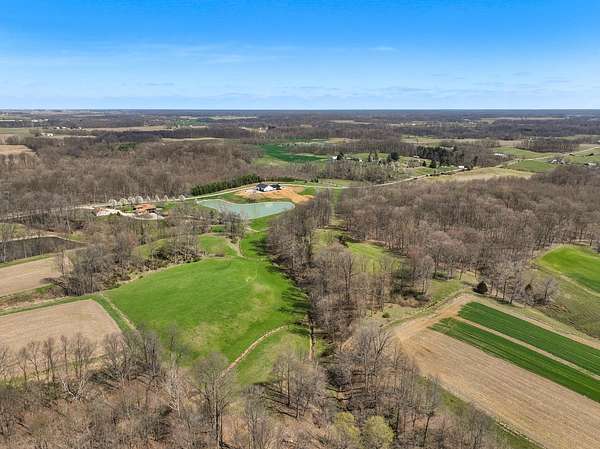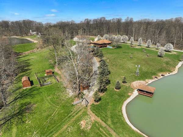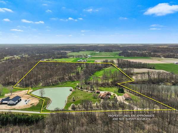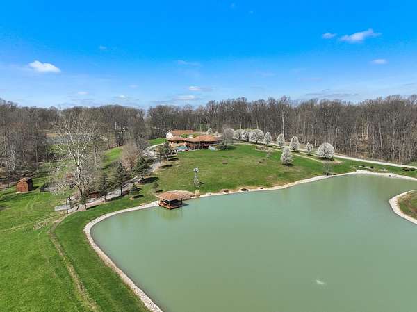 Motivated Sellers! Custom Built Brick Ranch that sits on over 35 acres w/ some of that being woods. This is a dream home for anyone looking for a blend of luxury, privacy, and space to enjoy country living. This ranch offers 3 bedrooms 3 1/2 Baths. Two master en-suites that has been remodeled w/in 5 years. The kitchen is open & has an island which is a fantastic space for cooking & entertaining, w/ the added bonus of the appliances being replaced in 2020. Hardwood flooring is in LR, DR, bedrooms and hallways. Geothermal was installed in 2023 along with a 2nd Hot Water Heater. You will find endless possibilities in the basement w/ the option for an in-law suite or multi-generational living, the basement offers additional bedroom, a family room, kit, bath & a room that could be used as a gun safe with a proper door. So many outdoor options, enjoy your mornings or evenings on the covered porch off the kitchen, stocked pond that's under 2 acres. Also theres 40x60 pole barn w/ a 1/2 bath.