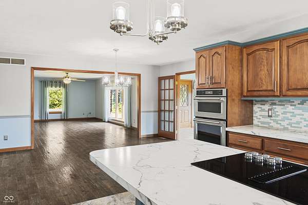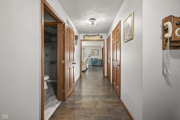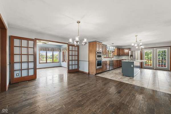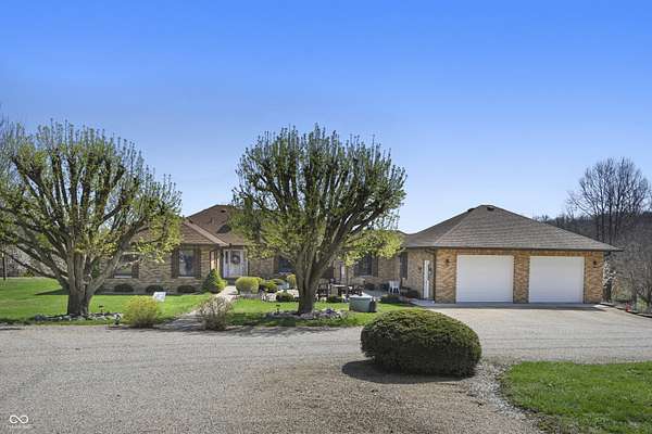 Enjoy 35 acres, stocked pond and a custom built ranch home with over 5000 sq ft of living space. This is a dream home for anyone looking for a blend of luxury, privacy, and space to enjoy the country living. This ranch offers 3 bedrooms and 3 1/2 baths. Two master suites that have been remodeled in the last 5 years. The kitchen is open with an island which is great for entertaining, with the appliances being replaced in 2020. Hardwood flooring is in the LR, DR, bedrooms and hallway. Geothermal was installed in 2023 along with a 2nd water heater. Endless possibilities in the basement with the option of in law suits or multi-generational living, the basement offers additional bedroom, family room and kitchen and bath, it also has a room that can be used for gun safe with the proper door. There are many outdoor options, enjoy your morning or evenings on the covered porch off the kitchen, stocked pond that's under 2 acres. There's also a 60x40 pole barn with 1/2 bath. Bring your animals and enjoy the outdoors. Plenty of room to roam on your side by side or ATV's.