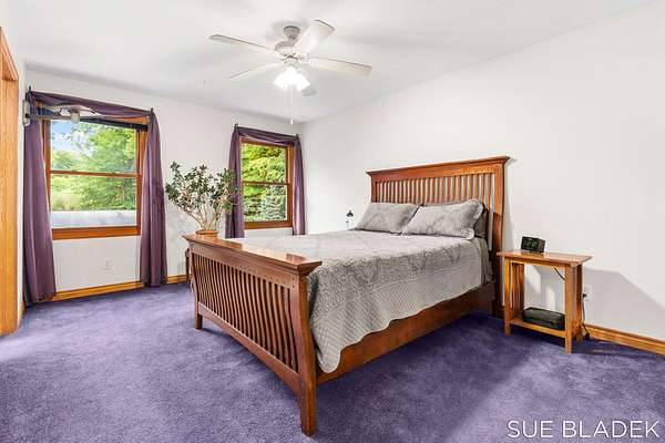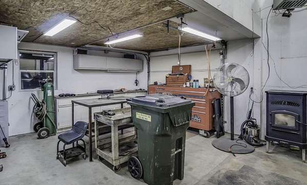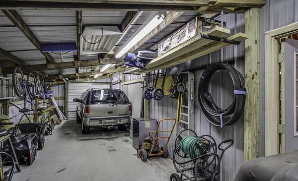A standout feature is the 2,200-square-foot pole barn, well-equipped with two furnaces, a pellet stove, half bath, 14-foot ceilings, and multiple overhead doors (two 12-foot, one 10-foot, and three 7-foot). Additional features include two attic storage areas, a 9,000-pound car lift, and an air compressor (negotiable) --making it an excellent space for projects, storage, or hobbies.