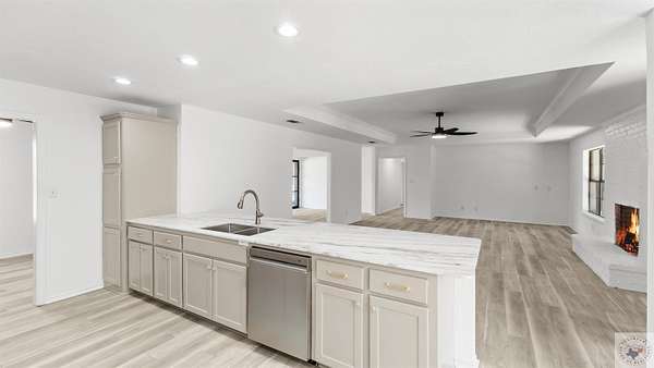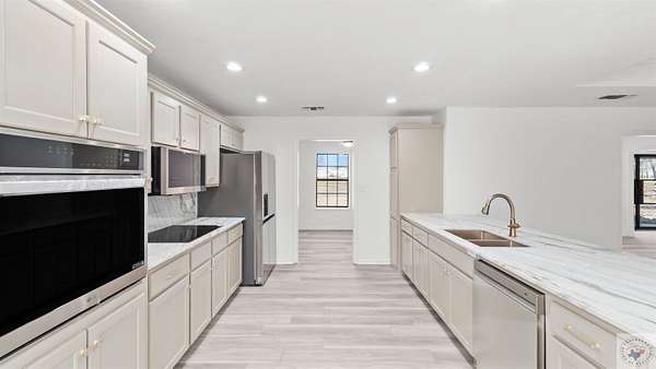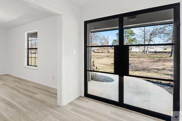 This home renovation places a premium on quality and style, delivering the ultimate in luxury finishes for discerning buyers. The kitchen features cabinets painted in Benjamin Moore's elegant Pashmina, a rich gray hue, complemented by gold hardware and soft-close doors and drawers. Accentuated by LG appliances and classic shaker-style cabinetry, the centerpiece is a generously-sized island that seats 6-8, depending on your choice of bar stools. On the exterior, the trim is finished in Iron Ore and paired with custom iron and glass front doors, framed in Tricorn Black. These striking glass doors flood the home with natural light, creating a warm and inviting space. The home boasts a timeless layout, including an office, formal dining room, spacious living area, 2.5 bathrooms, and a private backyard that backs onto serene woods. Convenience is also keyGthis property is just five minutes from Albertsons and the neighborhood market with easy access to Hwy 59 S. The oversized garage provides ample space for tools and storage, while the master suite includes a luxurious, oversized shower and spacious closets. A half-bath near the laundry area adds functionality, perfect for busy days. Whether you're seeking the peace of country living or room to grow with your family, this home is an ideal choice. The kitchen is fully equipped, with a refrigerator included alongside top-of-the-line LG appliances. With thoughtful design and attention to detail throughout, this home is ready to welcome you.