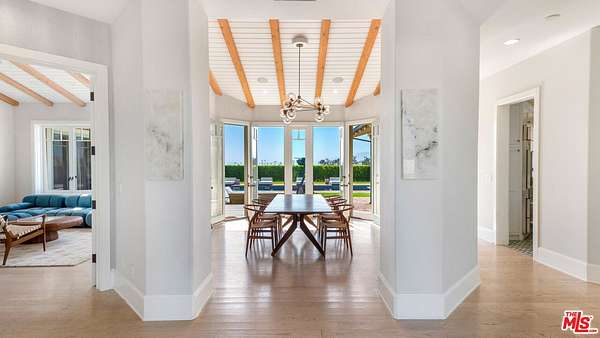 Set behind gates along coveted Dume Road, this private Point Dume estate offers sweeping ocean, mountain, and sunset views across expansive resort-like grounds. A circular driveway, manicured hedges, and broad grassy lawn create a classic arrival with exceptional privacy and parking for 10+ vehicles.A covered entry opens to a light-filled foyer with high ceilings, wood floors, and immediate ocean views. The main living areas feature vaulted wood-beamed ceilings, French doors, and seamless indoor outdoor flow to patios, lawns, and pool terraces. The family room and formal dining room with bar area both open to the backyard, while a lower living room with stone fireplace provides an additional gathering space. A dedicated office library with rolling ladder shelving offers a quiet retreat.The chef's kitchen includes a large stone island with seating, Viking 8-burner range and double ovens, Sub-Zero refrigeration, Bosch dishwasher, Wolf microwave, Miele coffee system, wine refrigeration, walk-in pantry, and a bright breakfast nook overlooking the front gardens.The primary suite features vaulted ceilings, fireplace, French doors to the grounds, and a spa-style bath with marble double vanity, soaking tub, oversized shower, bidet water closet, and expansive custom walk-in closet. Additional bedrooms include lofted sleeping spaces, walk-in closets, and en-suite or Jack-and-Jill baths. A bonus room with bath off the garage offers flexible use as gym, studio, or office.Outdoors, the property functions as a private compound. A large rectangular pool and spa are surrounded by brick terraces, lawns, firepit lounge, outdoor heaters, and entertaining patios. A separate guest house with bath and outdoor shower sits beside a barbecue pavilion with grill and refrigeration. Meandering garden paths, citrus trees, apple tree, turf seating areas, sports court, chicken coop, and mature landscaping enhance the grounds.Additional features include a 3-car garage currently outfitted as a gym, central vacuum, water filtration system, iPort smart home system, Nest climate control, exterior cameras, and gated intercom entry.Includes coveted Riviera 3 beach key access to Point Dume's private beach gate.Located moments from beaches, trails, and the Point Dume Village, this rare offering combines scale, privacy, and classic Malibu coastal living in one of the area's most sought-after neighborhoods.