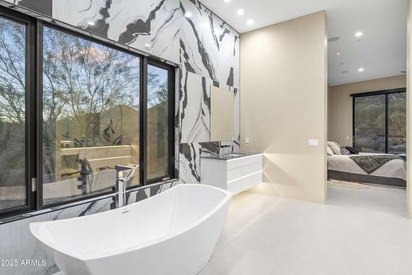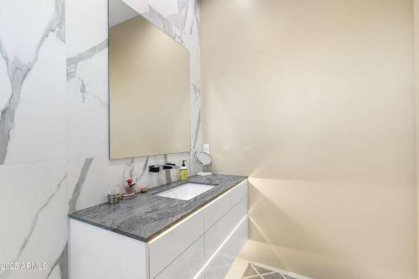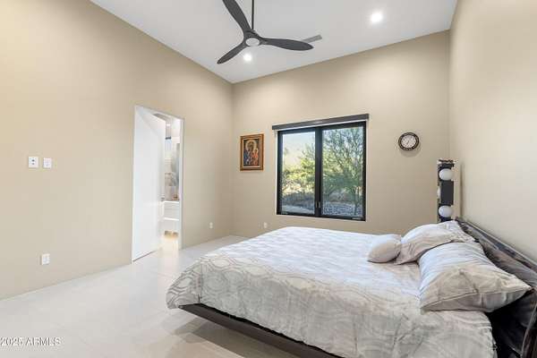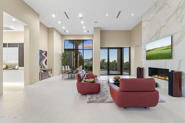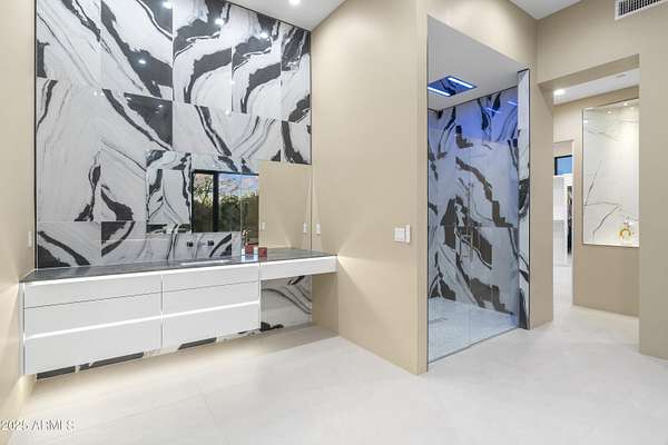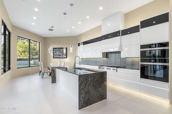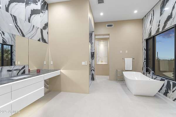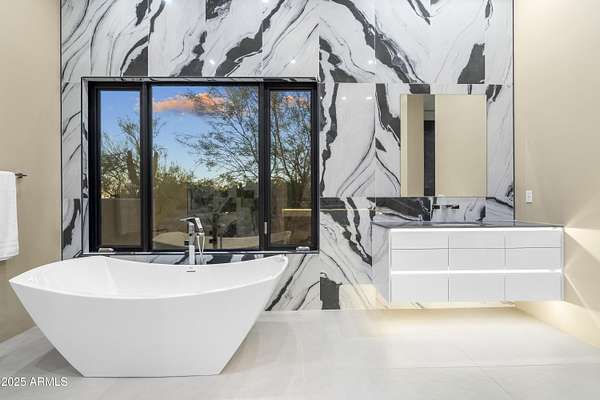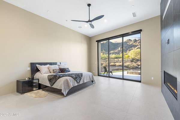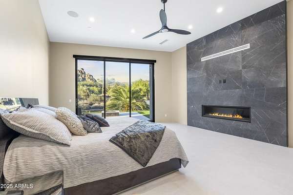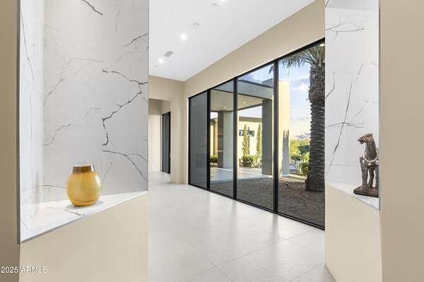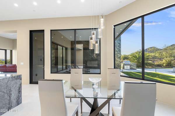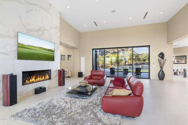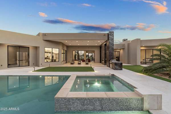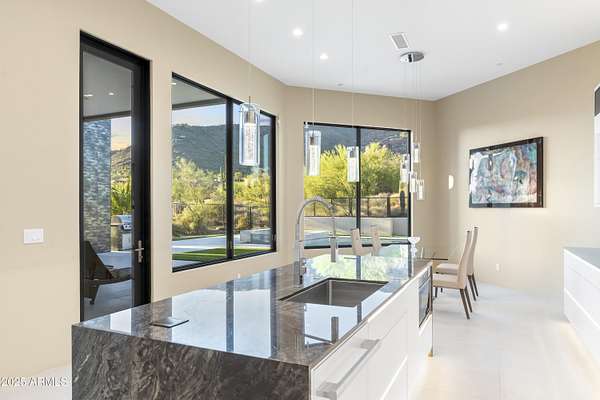 Desert Luxury Meets Modern Design -Lot: Nestled on 1.7 acres with dramatic views of Black Mountain. -Size: 5,609 sq. ft. of refined living space. -Indoor-Outdoor Flow: 18-ft. high, 10-ft. wide automated glass wall opens to a resort-style backyard with heated pool and spa. Garage: -Oversized 4-car garage (1,720 sq. ft.) -Ready for car lifts -Epoxy floors, 10-ft insulated door, high ceilings -Half bath and large sink-perfect for pet bathing. Chef's Kitchen & entertaining Quartzite island, Miele appliances (steamer, gas cooktop, built-in fridge), wine storage, walk-in pantry, and butler's pantry. Primary Suite Sanctuary Black Mountain views, gas fireplace, private patio access, Spa-style bath: soaking tub, dual vanities, walk-in shower, two toilet rooms, dual custom walk-in closets and a private office. =IThree additional ensuite bedrooms.