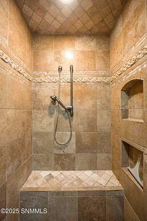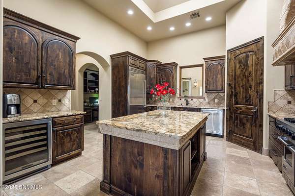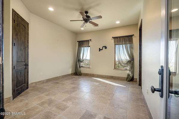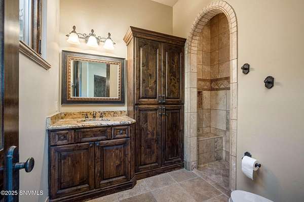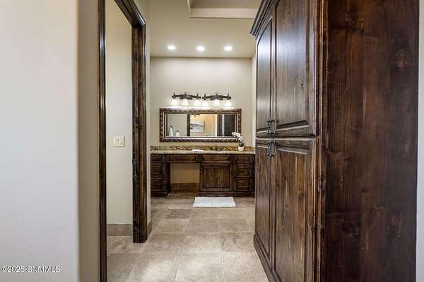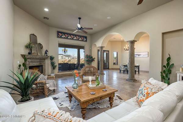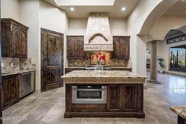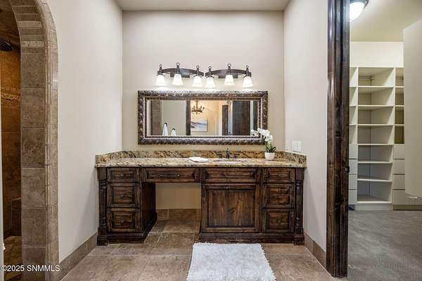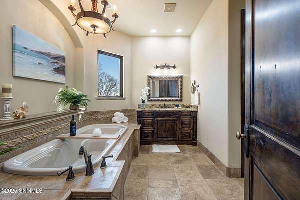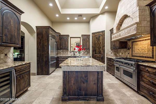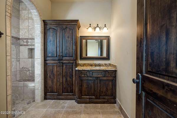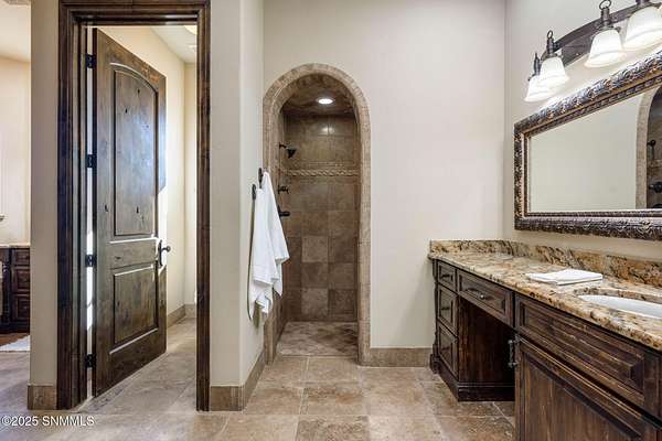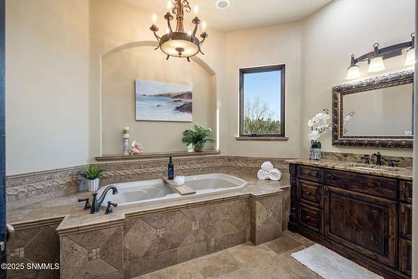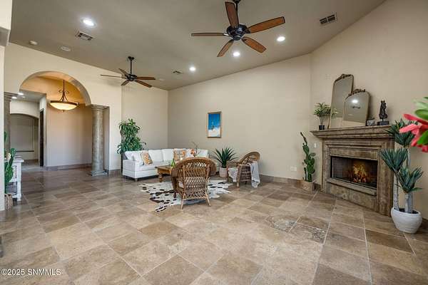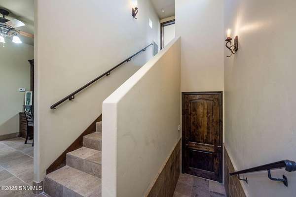 This home offers elegant living on one of the highest hills in Escondida. Large homesite with panoramic views of the Organ mountains. No detail was left out, from the talavera tile floors with tile base to the gourmet custom kitchen which includes viking appliances and custom cabinetry. All 3 bedrooms have an en suite bathroom. Primary bedroom has a flex area adjacent for a perfect home gym area or home office. The upstairs flex room can easily be another bedroom as it includes 1/2 bath and closet space. Or can be an incredible entertaining space with its large center island, sink/wet bar area and balcony. The outdoor patio features a fire place, built in grill and sink . The perfect size pool and spa all with views of the Organ mountains. Beautiful mature bushes and trees and exotic cactus surround the home in beautiful terraced gardens giving the home an oasis in the desert feel! Neighborhood tennis, pickle ball courts and playground