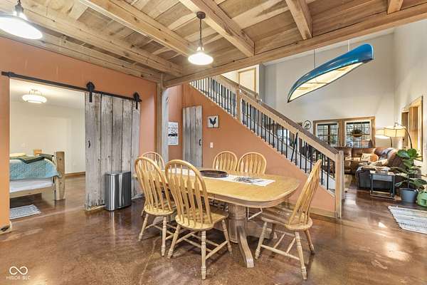 Est $4,960/moTurnkey short term rental on 10 acres with a water view! Outside features include wrap around deck, hot tub, firepit with seating, shelter house, 2 lakes (one shared), garden area, mature landscaping, 6 garage bays, RV carport with hookups, and so much more. The interior of the home features 3 bedrooms and 3 baths, an open concept with vaulted ceilings, master suite on the first floor, custom country kitchen, loft area with pool table, and office/storage area. The heated detached garage is fully insulated and finished on the interior and includes a car lift. This home has to many features to list and is a must see property!