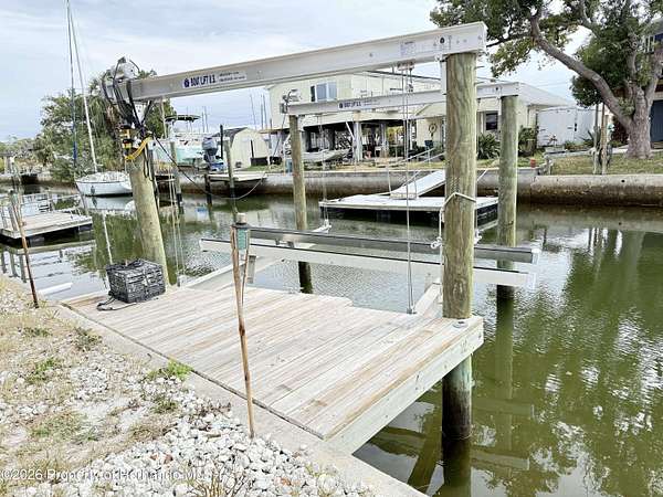 Build your waterfront dream on this exceptional vacant lot situated on a saltwater canal with direct Gulf access, offering the ultimate Florida boating lifestyle. The property features a 60-foot concrete seawall, a brand-new boat lift installed in 2024, and a floating dock, making it ideal for boaters and water enthusiasts. Already equipped for convenience, the lot includes an electric power pole with RV hookup, two concrete pads, and is fully fenced with a large storage shed for all your gear. Enjoy the perfect blend of privacy and accessibility, with shopping, dining, and everyday amenities just minutes away, making this a rare opportunity to own a well-improved waterfront lot ready for immediate enjoyment or future development.