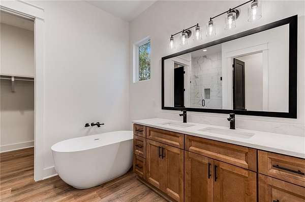 A stunning newly built 2025 Custom home located on nearly 2 private acres with peaceful scenery and NO HOA, you will find friendly neighbors who know your name and a sense of community that is hard to come by in larger cities. Perfect location in Dallas, Georgia in the desirable North Paulding High School district. Step onto the inviting wraparound front porch or relax on the covered back porch overlooking a stunning pond. Picture-perfect spot for morning coffee or evening sunsets. But wait it gets better... completed with 4 sided sod lawn to the elegant farmhouse-inspired finishes throughout. Inside, the open-concept dream kitchen is a fan favorite with a large quartz island, tiled backsplash, stainless steel appliances, and timeless shaker cabinets. Gorgeous LVP floors flow throughout the home, leading to a bright living area featuring wooden beams, farmhouse doors, and a stone fireplace flanked by built-in bookcases and floating shelves. Convenience meets comfort with a garage located just off the kitchen, making everyday simply effortless. Escape the hustle and bustle of the city and experience the charm of small-town living in Ferguson Farm, but still accessible to everything you'd need, just minutes from town with shopping, delicious dining and outdoor parks! This home is MOVE-IN ready, don't miss the chance to make it yours!