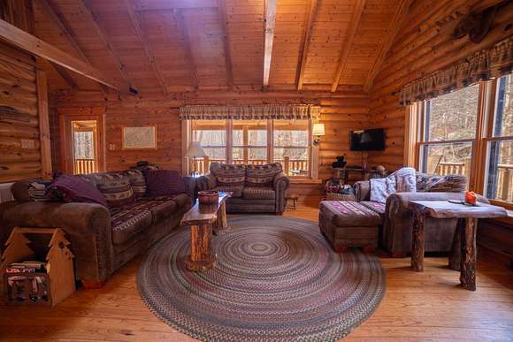 Located in the quaint little community of Trust, just outside of Hot Springs, NC, lies this beautiful 200+/- acres with a modern log home! The property has a wooden walkway leading down to a huge deck overlooking the beautiful Charlotte Branch, that originates on the property! With the cabin being located deep into the property, the nearly half mile long driveway gives you privacy like none other. Winding through this property are many ATV trails that will take you to almost every corner from the bottom to the top, with elevations ranging from 3,000' to over 4,000'! The cabin is currently in a rental program, being booked constantly, and is bringing is a healthy revenue stream. Imagine sipping a warm cup of coffee on the porch of this log cabin in every season of the year, from beautiful spring mornings, to cool Summer nights around the fire, colorful Fall days, or watching the snow fall in the Winter. You'll be surrounded by 200+/- acres of pure Smoky Mountain Bliss!