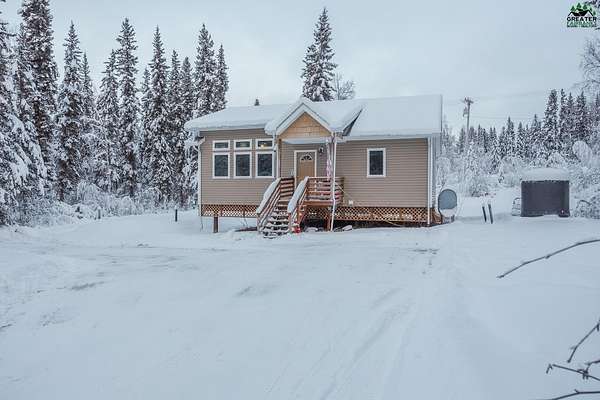 Welcome to this cozy 2-bedroom, 1-bath home located on a beautiful and quiet 1.8-acre lot--an ideal opportunity for a first-time buyer or anyone looking to enjoy peaceful living with room to breathe. Minimal light pollution makes this property a prime spot for breathtaking aurora viewing right from your own yard. Inside, the home offers a warm and inviting atmosphere, featuring a pellet stove to help offset heating oil costs and efficient triple-pane windows that further reduce utility expenses. Large south-facing windows flood the home with natural light throughout the winter months, creating a bright and comfortable living space year-round. Enjoy outdoor living with both front and back decks--perfect for entertaining, summer BBQs, or simply relaxing and taking in the surrounding tranquility and abundant wildlife. If you're looking for an affordable home that blends comfort, efficiency, and Alaska's natural beauty, this one is a must-see.