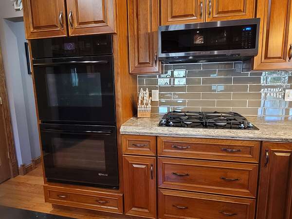 - Cooktop, Dishwasher, Disposal, Double Oven, Dryer, Microwave, Refrigerator, Washer, Water Softener Owned