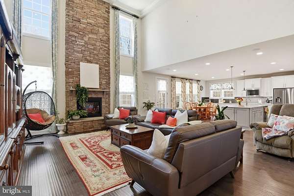 Exceptional 6,700+ sq ft luxury estate home situated on 5 private acres in Centreville, backing to serene trees and open fields, offering the perfect blend of privacy, space, and modern elegance. This stunning residence features a three-level open floor plan with high-end designer finishes and thoughtful custom details throughout, ideal for both everyday living and upscale entertaining. The main level welcomes you with a dramatic two-story great room highlighted by a coffered ceiling and a floor-to-ceiling stone fireplace, seamlessly flowing into the chef's gourmet kitchen designed to impress with quartz countertops, an oversized island, stainless steel appliances, custom cabinetry, and a spacious breakfast area. The main level also includes a multi-generational in-law suite with a full bath, a private office or den, a large secondary laundry room with cabinetry and utility sink, a walk-in pantry, and an expansive screened-in porch perfect for outdoor living. Hardwood flooring extends throughout the main level, primary suite, and upper hallways. Upstairs, the luxurious primary suite offers a true retreat with a spa-inspired bathroom featuring a soaking tub, dual vanities, a separate shower, and an oversized walk-in closet, while all secondary bedrooms are generously sized and include en-suite bathrooms, providing comfort and privacy for all. The fully finished walk-out lower level is designed for entertaining and flexible living, featuring a media area, wet bar, guest suite with a full bath, ample storage, and direct access to the fully fenced backyard with wooded views. Exterior highlights include a 5-acre private lot, screened-in porch, metal fencing, storage shed, lawn sprinkler system, and a 4-car garage. Enjoy the tranquility of a private estate while remaining conveniently located with easy access to I-66, Route 28, and Route 29, just 10 minutes to Dulles International Airport, and close to Manassas National Battlefield Park. This is a rare opportunity to own a luxury estate home in Centreville offering unmatched space, privacy, and modern comfort.