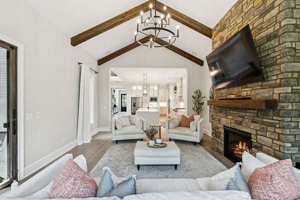 Welcome to this exquisite custom home set on five rolling Tennessee acres in the heart of College Grove. Built less than a year ago, this residence blends modern luxury with timeless craftsmanship. Soaring ceilings, floor-to-ceiling windows, and open living spaces create a light-filled atmosphere throughout.