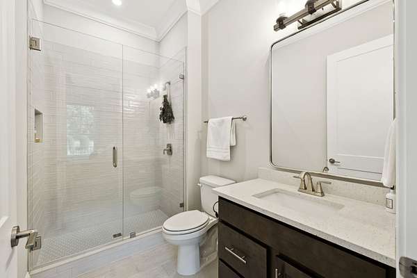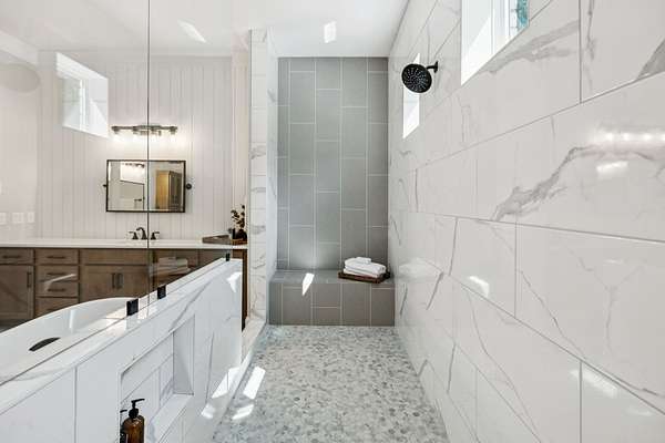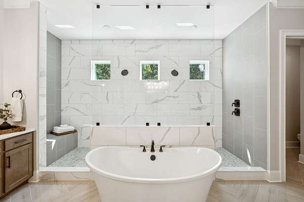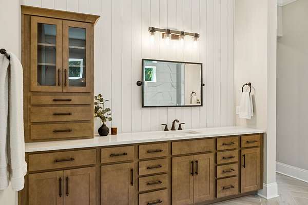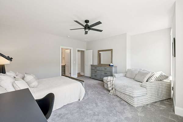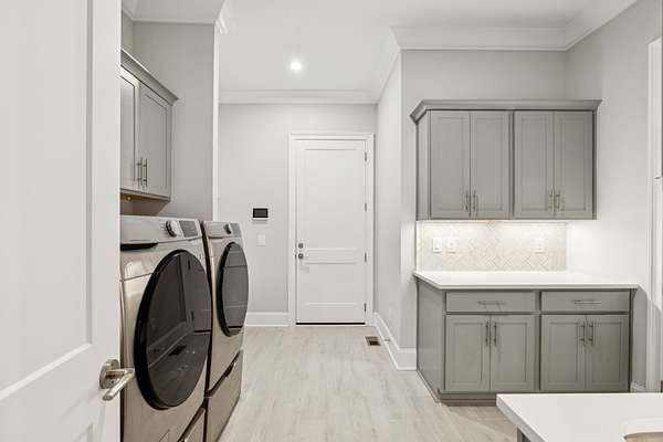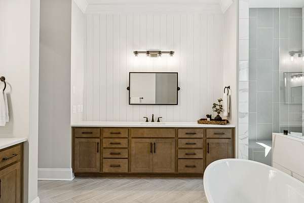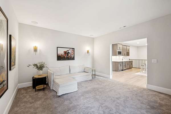 The primary suite is a true retreat, featuring a spa-like bath with a walk-through shower, soaking tub, dual vanities, and a massive walk-in closet connected to the laundry and mudroom. A second ensuite bedroom on the main floor offers flexibility for guests or multi-generational living. Upstairs, three additional ensuite bedrooms are complemented by a media room, game room, open bar, and powder bath--perfect for entertaining. The unfinished basement provides 1,981 square feet of future living potential with plumbing and wiring already in place.