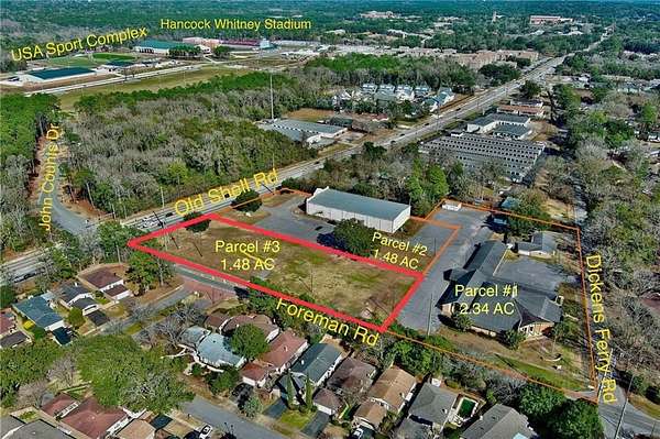 MOTIVATED SELLER-BRING ALL OFFERS!!! THE HOTTEST COMMERCIAL SITE IN MOBILE ALABAMA?ADJACENT TO LARGEST EMPLOYER OF PROFESSIONALS IN SOUTH AL!!! The Site/location is Very Exceptional and This Constitutes the Real Value. USA is the largest Employer of Professionals in South Alabama! The USA HOSPITAL SYSTEM is a training Hospital for Doctors and Nursing. Within the Last 2 Years, USA Has Added a Newly Constructed Sports Complex and Football Stadium. A New Intersection Was Created When the USA Added a New Drive (John Counts Dr) Leading Directly Hancock Whitney Football Stadium and the New Sports Complex & Parking. The SITE is in the South East Corner of the New Intersection with 163' on Old Shell Rd. and 410' on Foreman Rd. with a Total of 573' of Paved Street Frontage. The Site Consist of 1.48+/- Acres and has Paved Streets on 2 Sides. An Ideal Location for a Restaurant, Medical Complex, Educational. Retail Mixed Use, Fast food and other Commercial use. **This is the only available property with direct access to John Counts Drive and the USA Campus/Sport Complex. All measurements are approximate and not guaranteed, buyer to verify.