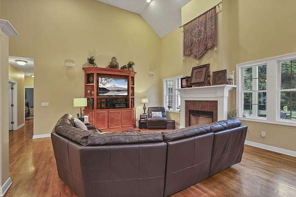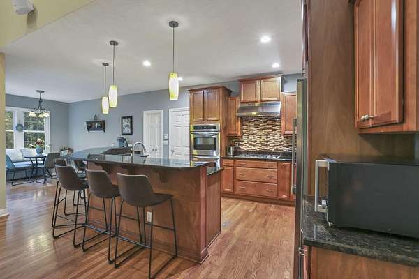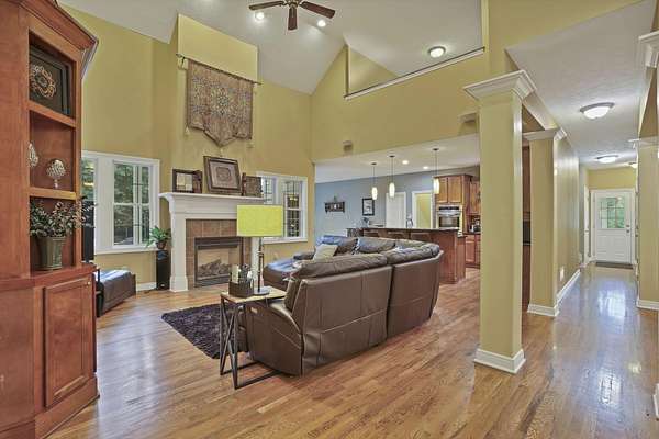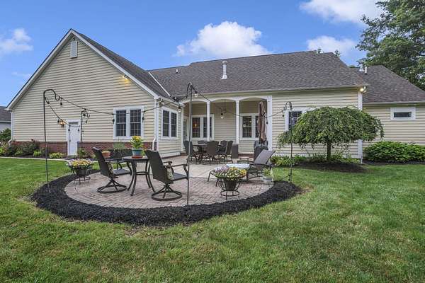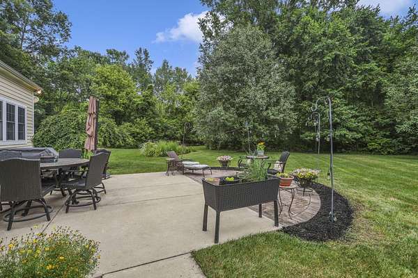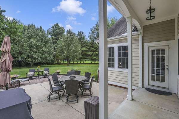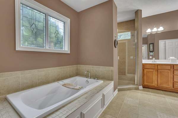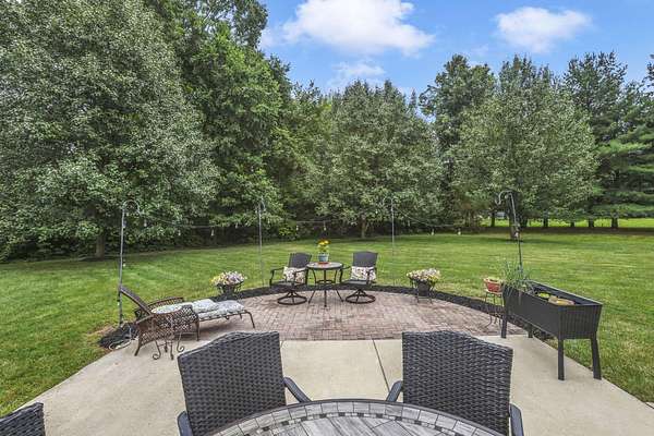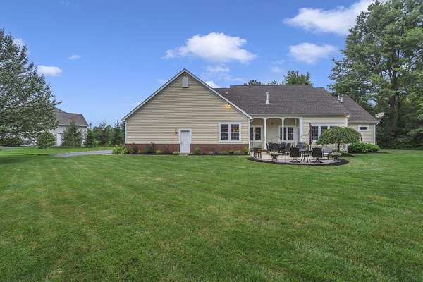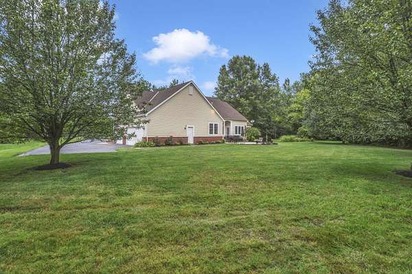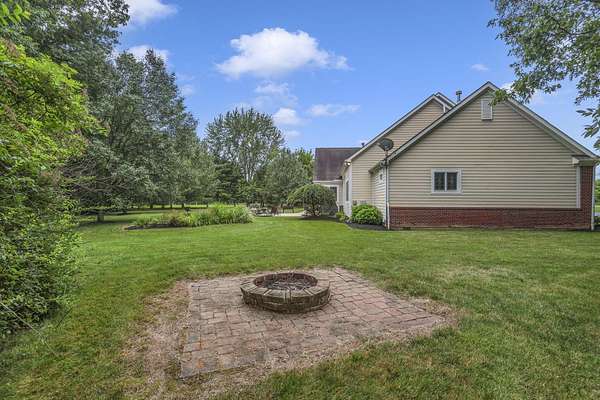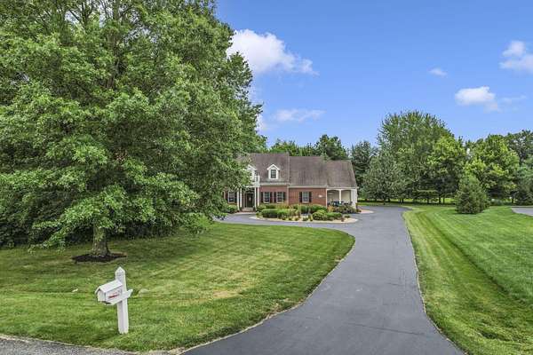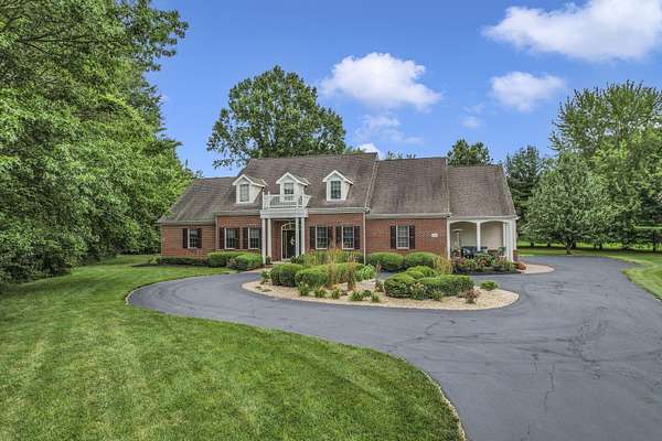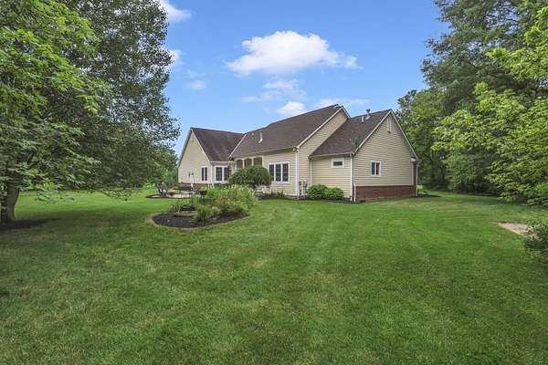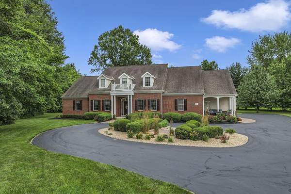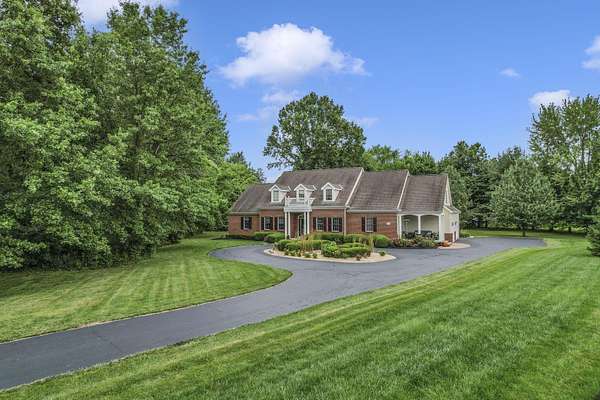 Upscale one owner home in Olentangy Schools [Cheshire Elem, Berkshire MS, Berlin HS]. Located on a peaceful cul-de-sac this custom-built home has over 1.5 acres. Private wooded trails lead directly to Alum Creek Park. 3621 sq. ft of living space above grade plus 1000 sq. ft of finished basement which is a seamless extension of the 1st floor. Highly sought-after first-floor master suite. with spa-bath, soaking tub, walk-in shower with bench, over-sized walk-in closet. A second first-floor bedroom and adjacent full bath is perfect for multi-generational living or guests. A dedicated home office with built in shelving and custom desk close to master suite could be the perfect nursery or study. The heart of the home is the 2-Story Great Room with custom built-ins, fireplace and dramatic southern-facing wall of windows overlooking a covered porch, paver patio and serene wooded yard. The chef-inspired kitchen includes high end propane range and hood, double convection ovens, abundant cabinetry, granite counters, and island with seating. A sunny breakfast nook opens to back porch. Formal dining room adds elegance for entertaining. Gleaming hardwood floors span the 1st floor. Convenient 1st floor laundry. Enjoy sunsets on the west facing sun porch. Front and rear lawns have well cared for flower beds. Plenty of wildlife to watch. Take guests downstairs to a spacious finished basement with family sitting area with fireplace [TV above fireplace could remain], rec/game room [billiards table could remain] ,exercise room, kitchenette with convection oven, large island, built-in wine racks., half bath. The partial basement areas have plenty of built-in shelving, sump pump , highly efficient geothermal HVAC, and hot water tanks. 3-bay garage has oversize bump in one bay to park a truck of any length. Prime location north of Route 36/37 and I-71, offering a perfect blend of accessibility, privacy and wildlife outside your window.