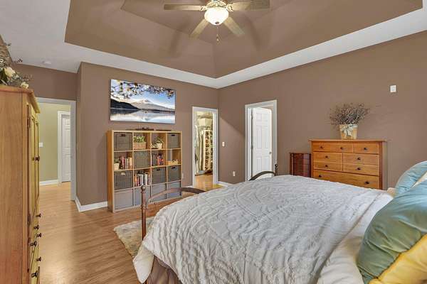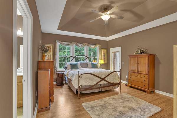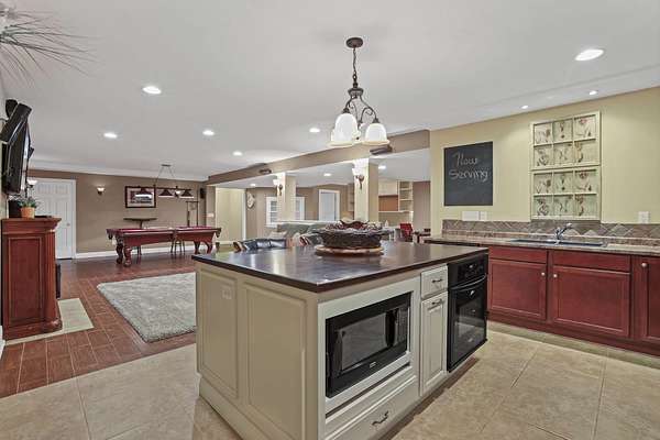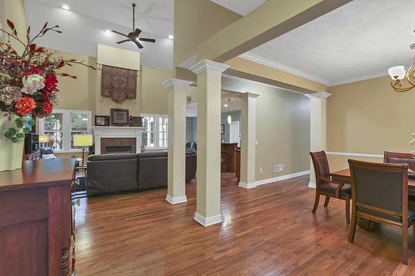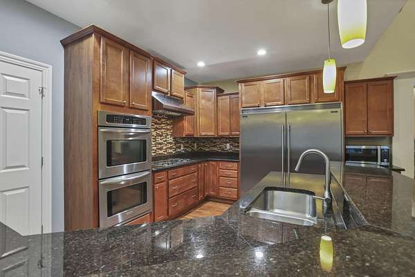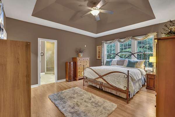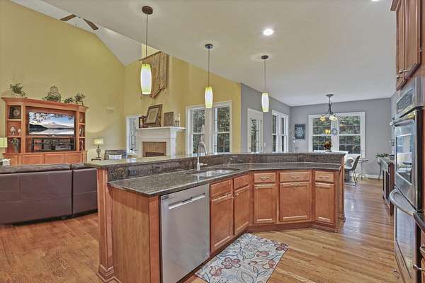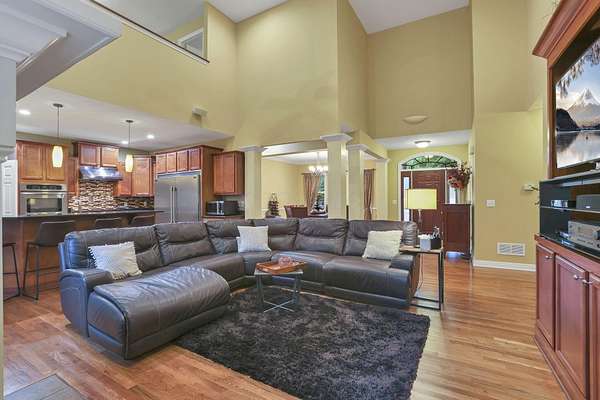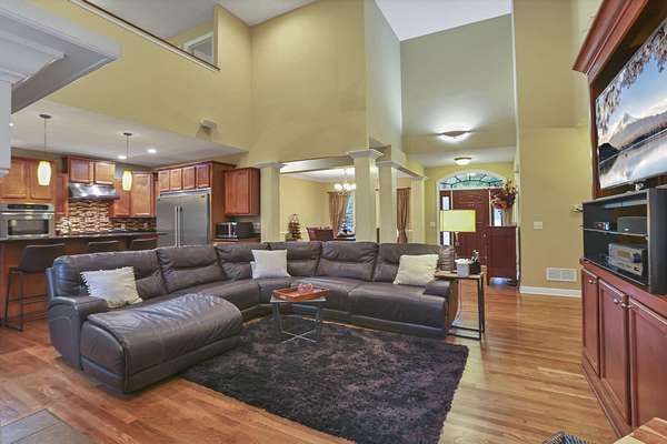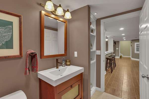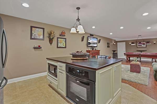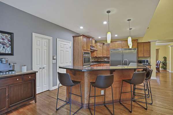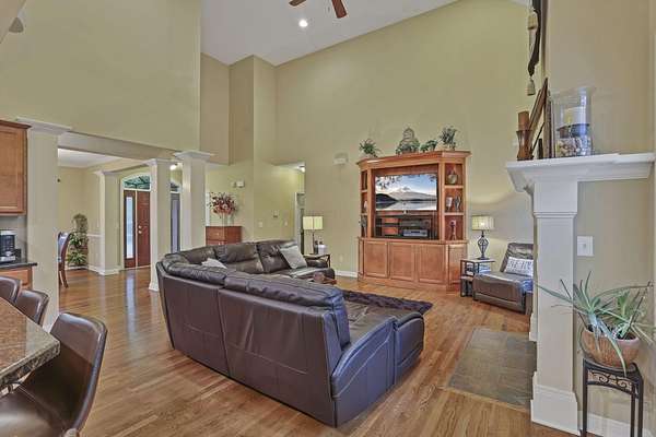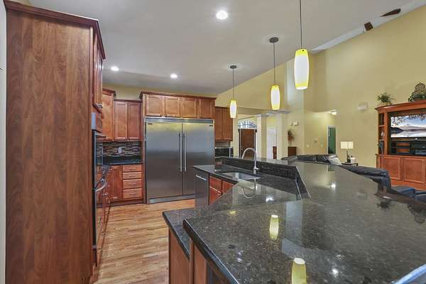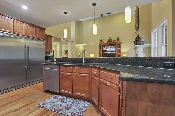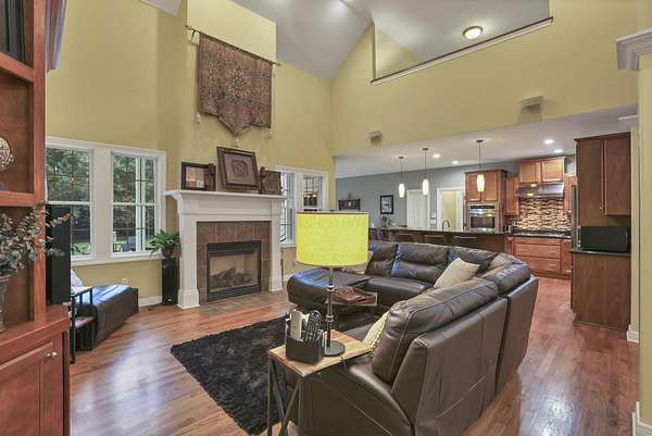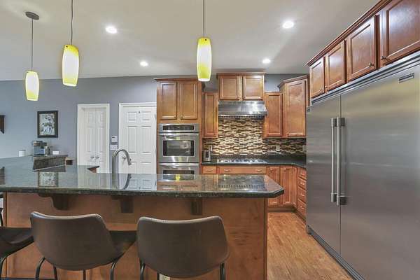 Upscale one owner home in Olentangy Schools [Cheshire Elem, Berkshire MS, Berlin HS]. Located on a peaceful cul-de-sac this custom-built home has over 1.5 acres. Private wooded trails lead directly to Alum Creek Park. 3621 sq. ft of living space above grade plus 1000 sq. ft of finished basement which is a seamless extension of the 1st floor. Highly sought-after first-floor master suite. with spa-bath, soaking tub, walk-in shower with bench, over-sized walk-in closet. A second first-floor bedroom and adjacent full bath is perfect for multi-generational living or guests. A dedicated home office with built in shelving and custom desk close to master suite could be the perfect nursery or study. The heart of the home is the 2-Story Great Room with custom built-ins, fireplace and dramatic southern-facing wall of windows overlooking a covered porch, paver patio and serene wooded yard. The chef-inspired kitchen includes high end propane range and hood, double convection ovens, abundant cabinetry, granite counters, and island with seating. A sunny breakfast nook opens to back porch. Formal dining room adds elegance for entertaining. Gleaming hardwood floors span the 1st floor. Convenient 1st floor laundry. Enjoy sunsets on the west facing sun porch. Front and rear lawns have well cared for flower beds. Plenty of wildlife to watch. Take guests downstairs to a spacious finished basement with family sitting area with fireplace [TV above fireplace could remain], rec/game room [billiards table could remain] ,exercise room, kitchenette with convection oven, large island, built-in wine racks., half bath. The partial basement areas have plenty of built-in shelving, sump pump , highly efficient geothermal HVAC, and hot water tanks. 3-bay garage has oversize bump in one bay to park a truck of any length. Prime location north of Route 36/37 and I-71, offering a perfect blend of accessibility, privacy and wildlife outside your window.